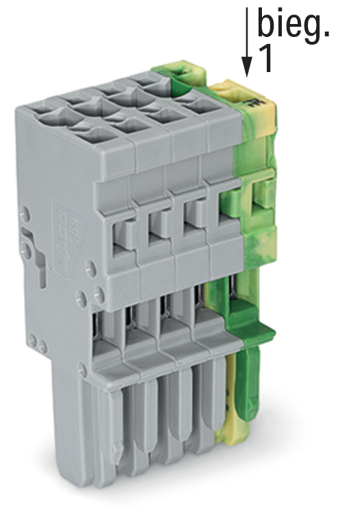 gniazdo 1-przewodowe; CAGE CLAMP®; 4 mm²; raster 5 mm; 5-bieg.; wypust kodujący; 4,00 mm²; żółto-zielony/szary