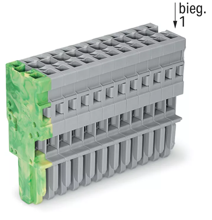 gniazdo 1-przewodowe; CAGE CLAMP®; 4 mm²; raster 5 mm; 12-bieg.; wypust kodujący; 4,00 mm²; szary/żółto-zielony