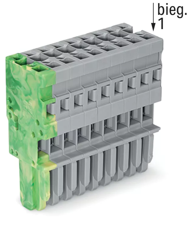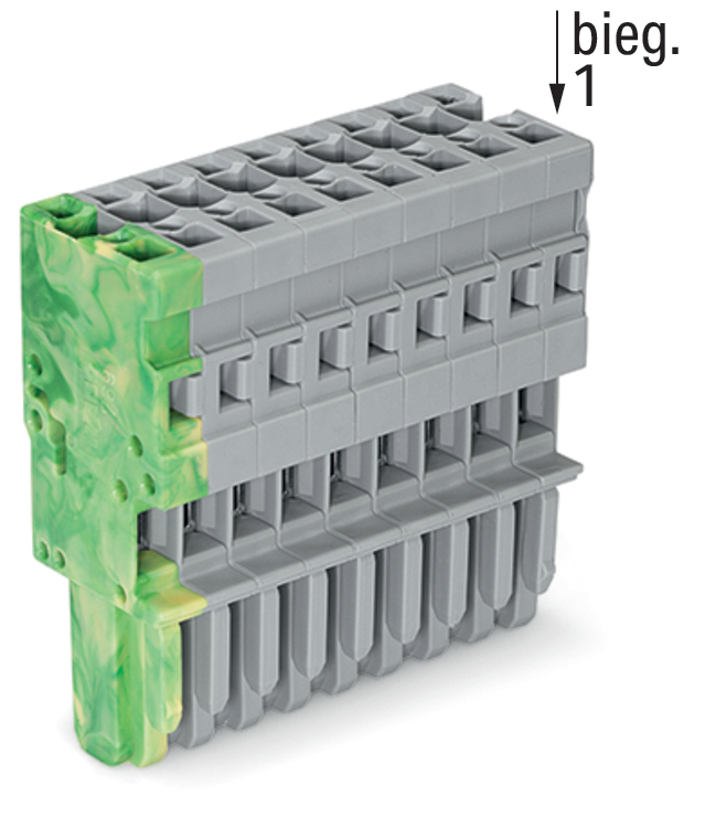 gniazdo 1-przewodowe; CAGE CLAMP®; 4 mm²; raster 5 mm; 9-bieg.; wypust kodujący; 4,00 mm²; szary/żółto-zielony