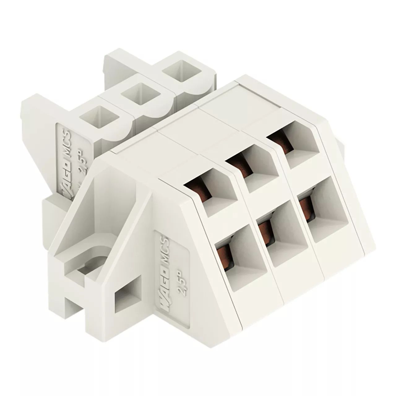 gniazdo 1-przewodowe kątowe; CAGE CLAMP®; 2,5 mm²; raster 5 mm; 3-bieg.; 100% ochrona przed błędnym połączeniem; kołnierz mocujący; 2,50 mm²; jasnoszary