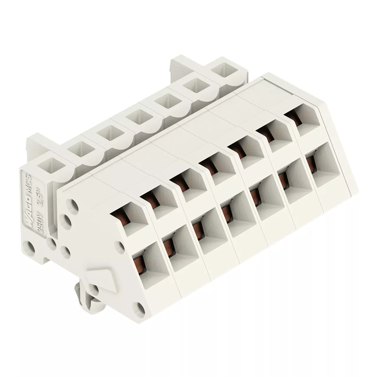 gniazdo 1-przewodowe kątowe; CAGE CLAMP®; 2,5 mm²; raster 5 mm; 7-bieg.; 100% ochrona przed błędnym połączeniem; stopki zatrzaskowe; 2,50 mm²; jasnoszary