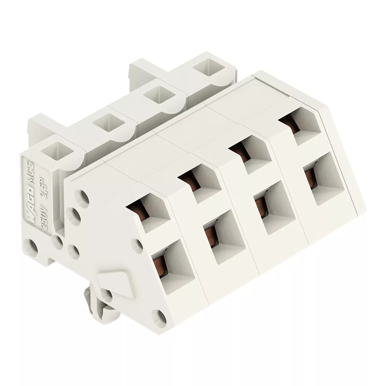 gniazdo 1-przewodowe kątowe; CAGE CLAMP®; 2,5 mm²; raster 7,5 mm; 4-bieg.; 100% ochrona przed błędnym połączeniem; stopki zatrzaskowe; 2,50 mm²; jasnoszary