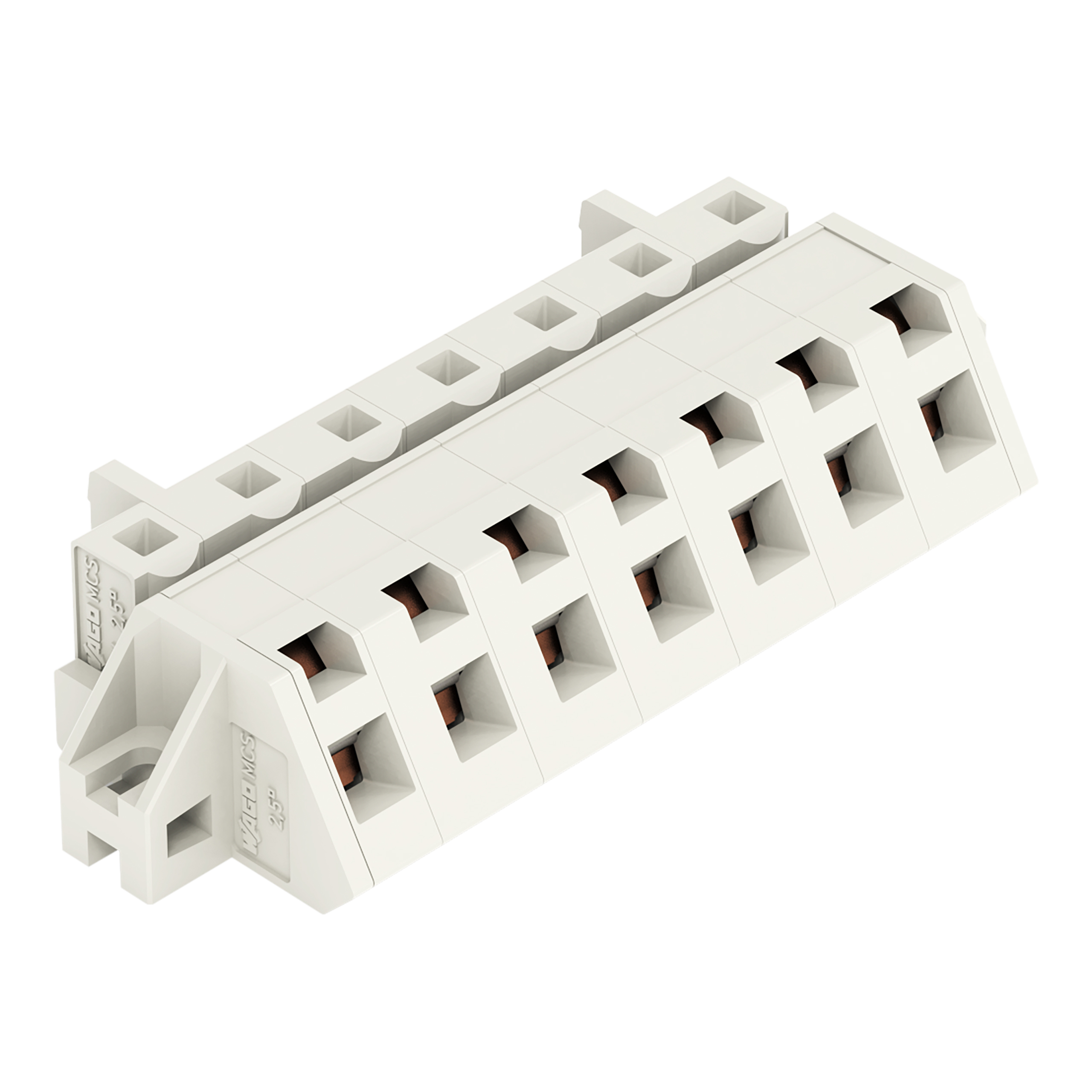gniazdo 1-przewodowe kątowe; CAGE CLAMP®; 2,5 mm²; raster 7,5 mm; 7-bieg.; 100% ochrona przed błędnym połączeniem; kołnierz mocujący; 2,50 mm²; jasnoszary