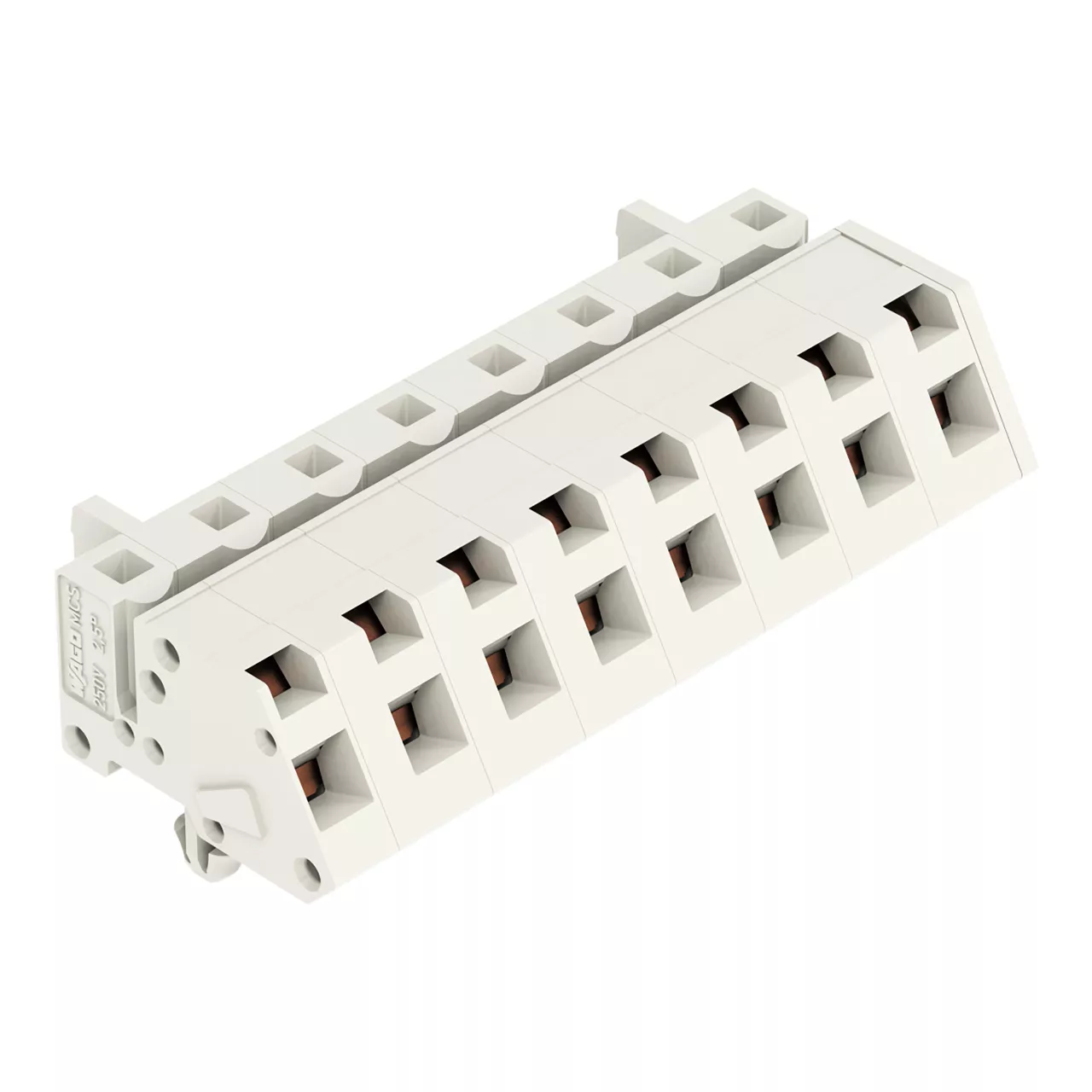 gniazdo 1-przewodowe kątowe; CAGE CLAMP®; 2,5 mm²; raster 7,5 mm; 8-bieg.; 100% ochrona przed błędnym połączeniem; stopki zatrzaskowe; 2,50 mm²; jasnoszary