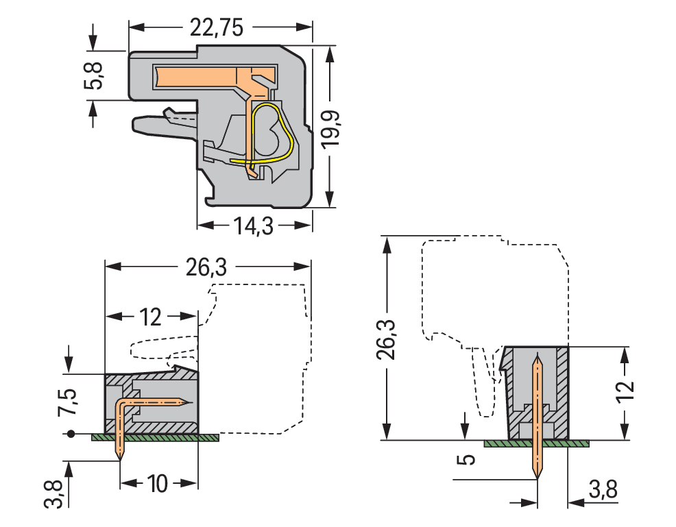 gniazdo 1-przewodowe kątowe; CAGE CLAMP®; 2,5 mm²; raster 5 mm; 11-bieg.; 2,50 mm²; szary
