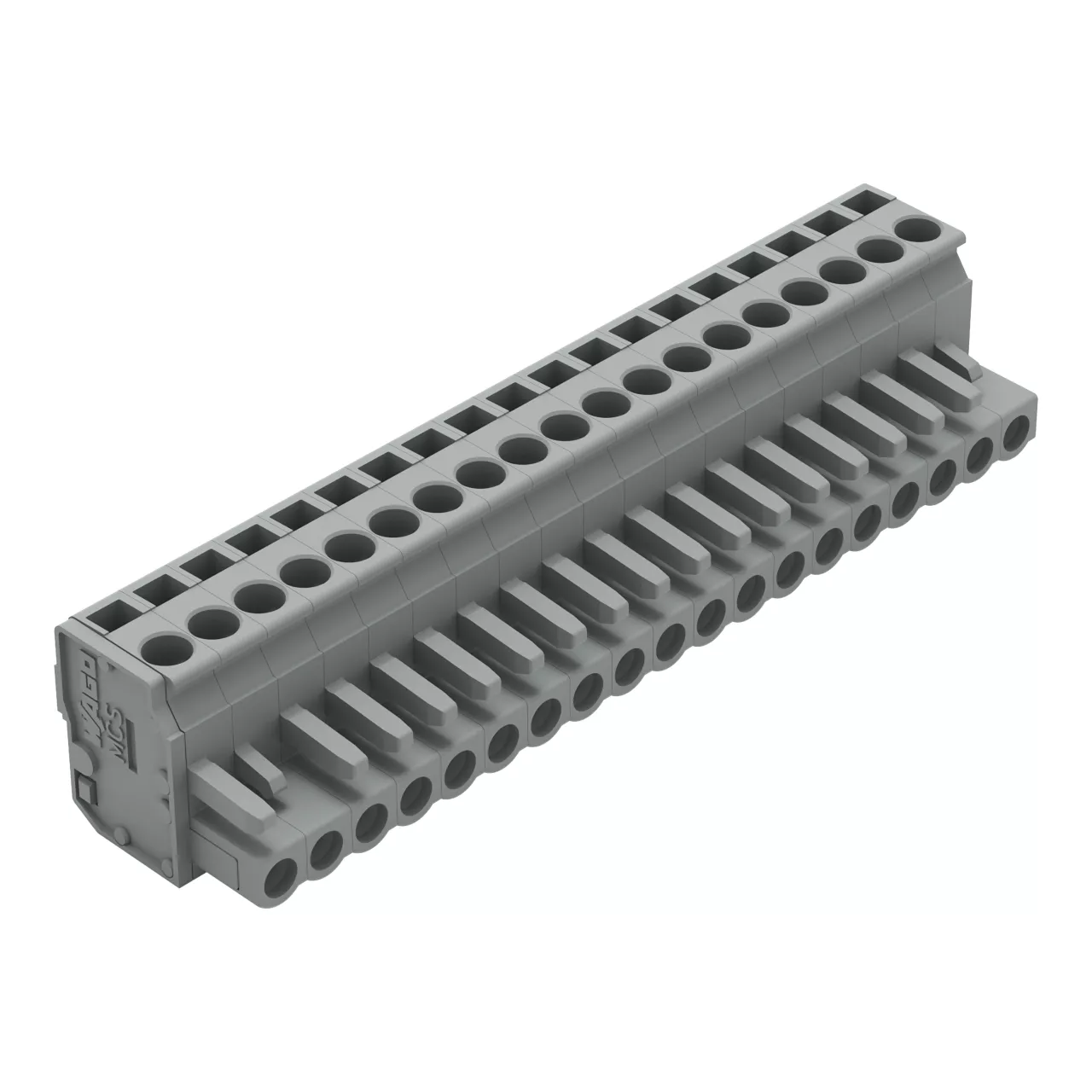gniazdo 1-przewodowe kątowe; CAGE CLAMP®; 2,5 mm²; raster 5 mm; 19-bieg.; 2,50 mm²; szary