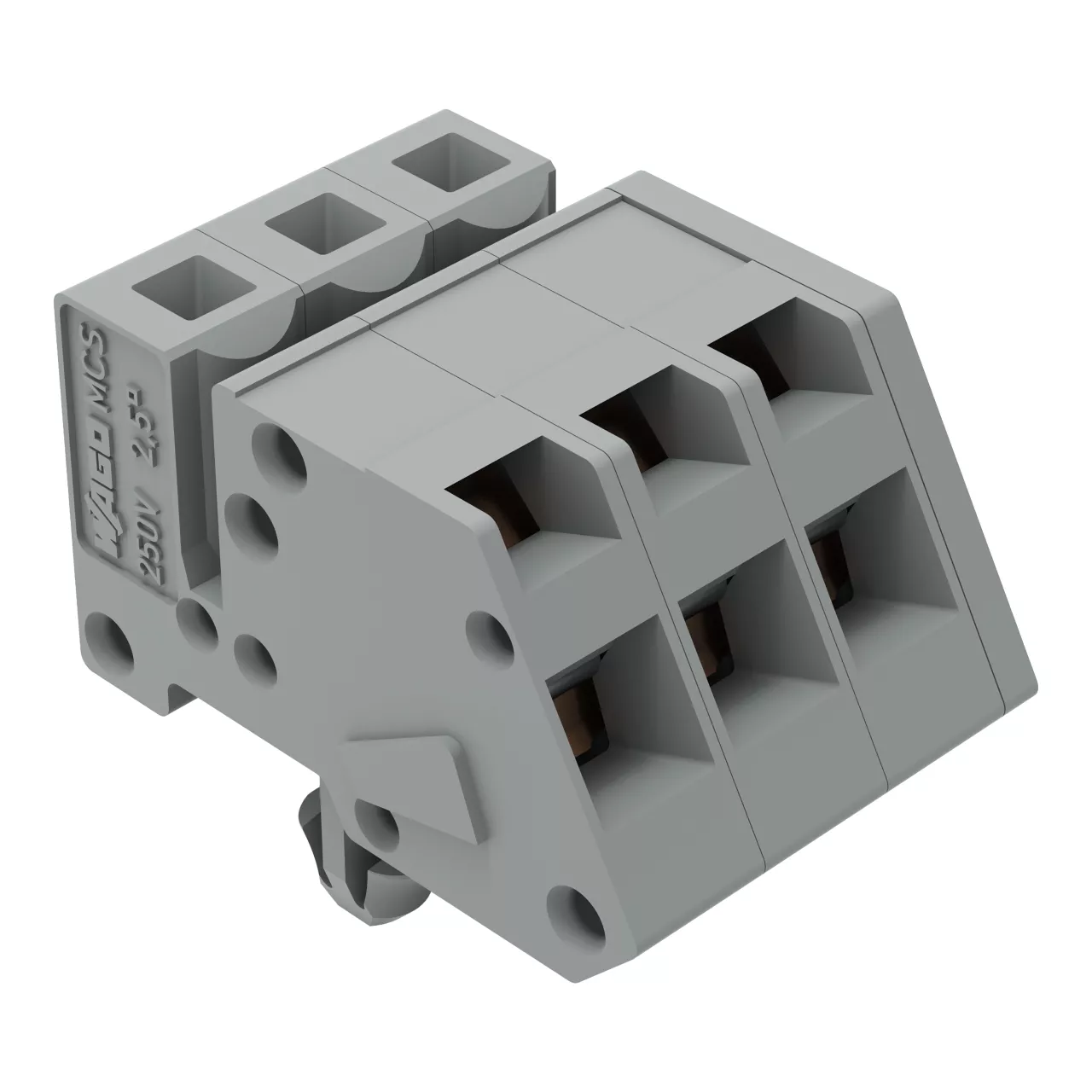 gniazdo 1-przewodowe kątowe; CAGE CLAMP®; 2,5 mm²; raster 5 mm; 3-bieg.; stopki zatrzaskowe; 2,50 mm²; szary