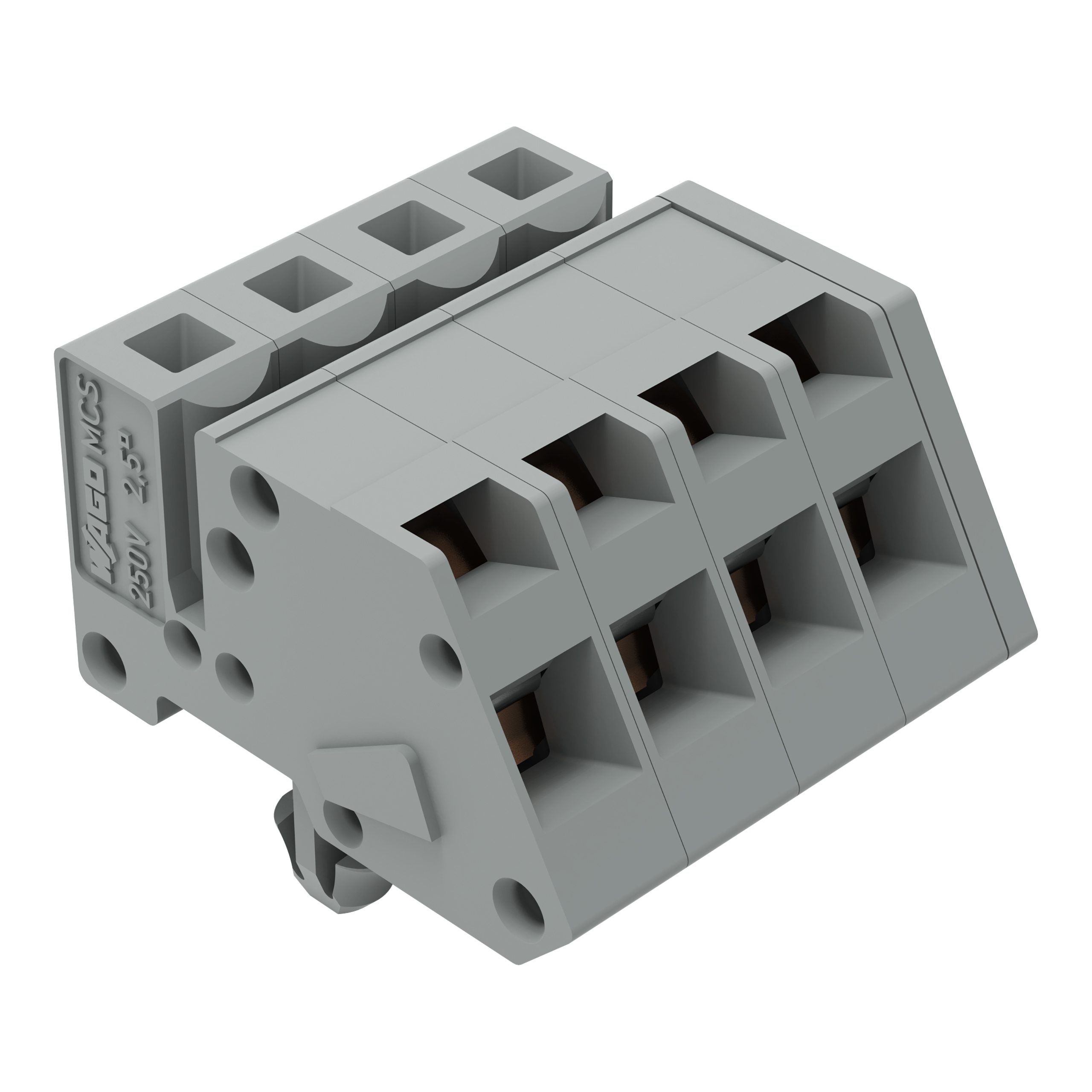 gniazdo 1-przewodowe kątowe; CAGE CLAMP®; 2,5 mm²; raster 5 mm; 4-bieg.; stopki zatrzaskowe; 2,50 mm²; szary