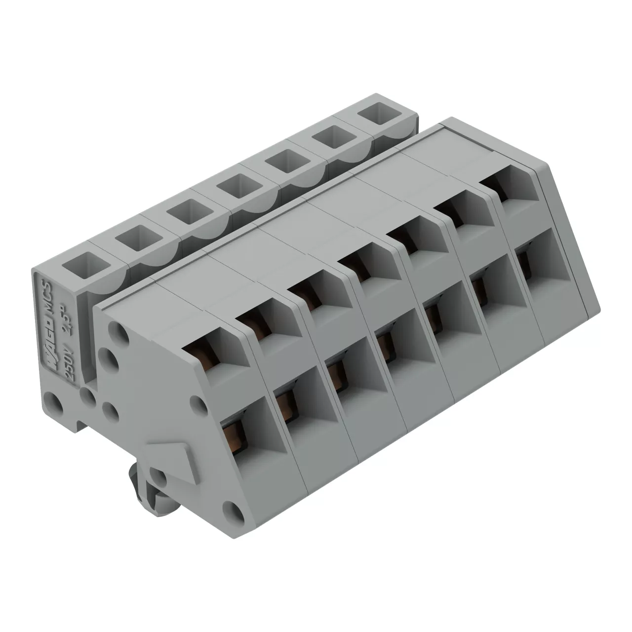 gniazdo 1-przewodowe kątowe; CAGE CLAMP®; 2,5 mm²; raster 5 mm; 7-bieg.; stopki zatrzaskowe; 2,50 mm²; szary