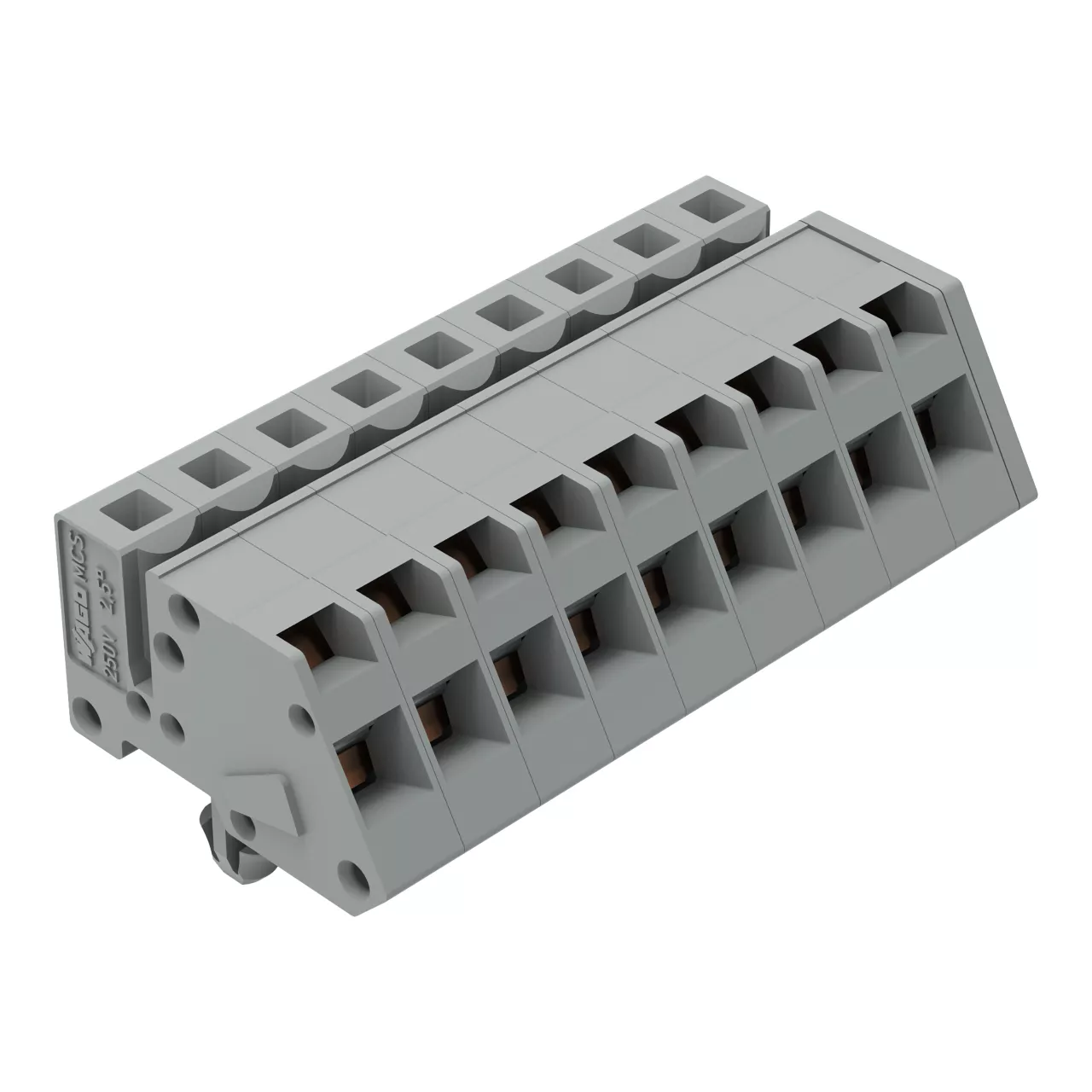 gniazdo 1-przewodowe kątowe; CAGE CLAMP®; 2,5 mm²; raster 5 mm; 9-bieg.; stopki zatrzaskowe; 2,50 mm²; szary