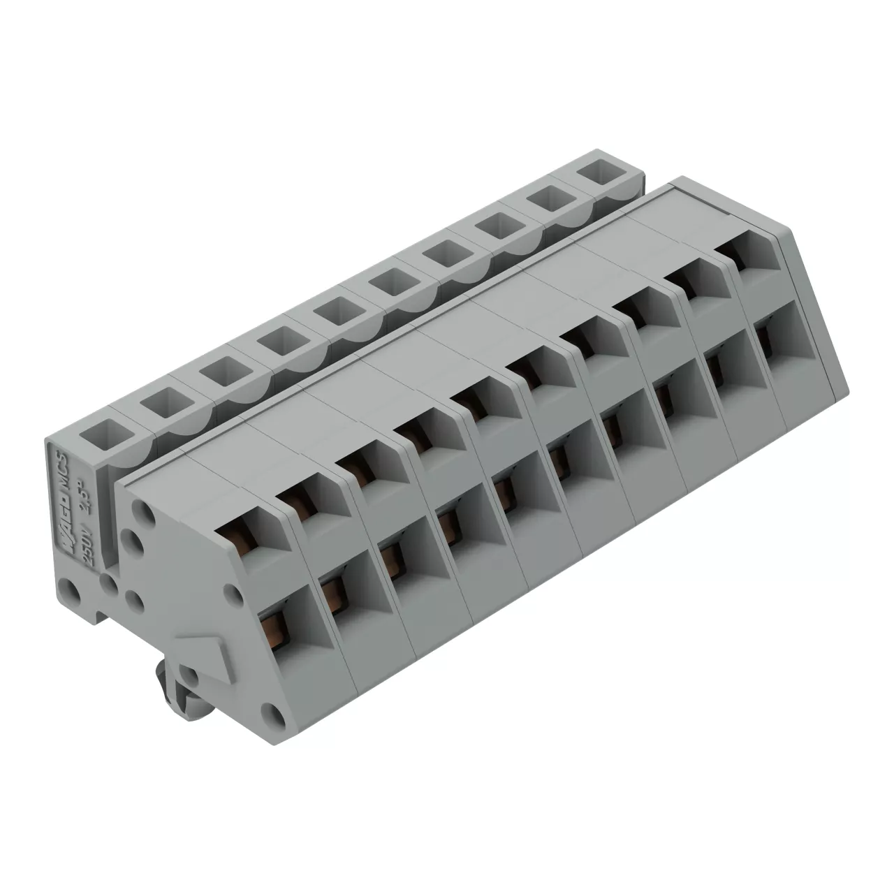 gniazdo 1-przewodowe kątowe; CAGE CLAMP®; 2,5 mm²; raster 5 mm; 10-bieg.; stopki zatrzaskowe; 2,50 mm²; szary