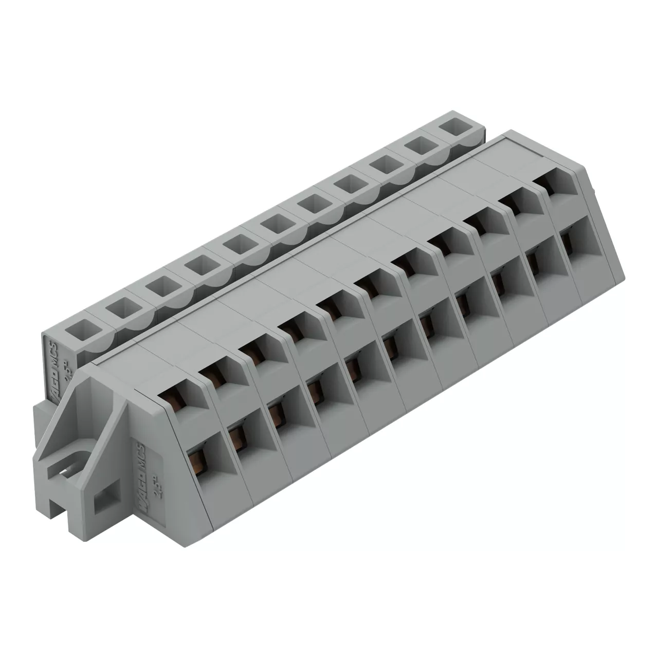 gniazdo 1-przewodowe kątowe; CAGE CLAMP®; 2,5 mm²; raster 5 mm; 11-bieg.; kołnierz mocujący; TS 35/montaż na płycie; 2,50 mm²; szary