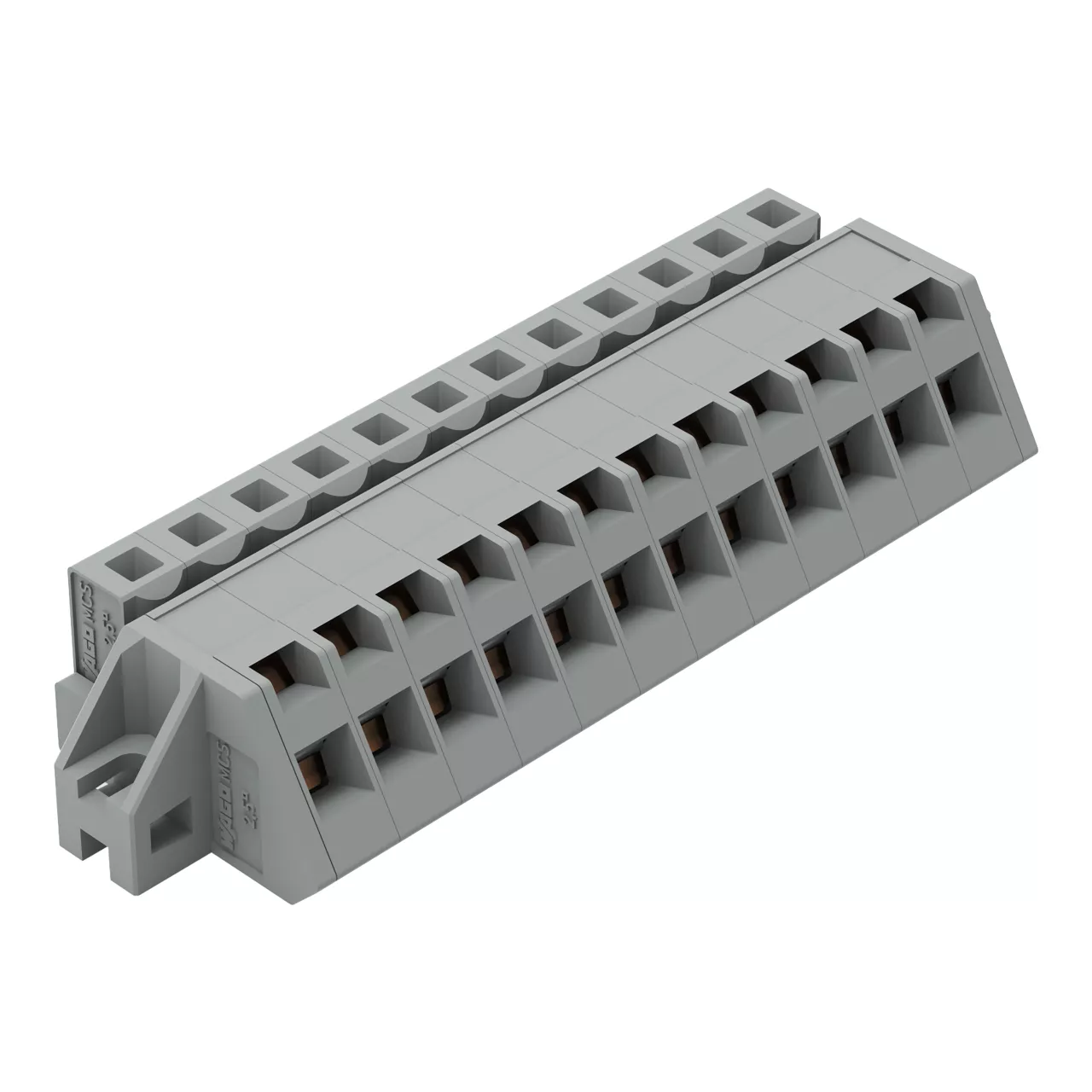 gniazdo 1-przewodowe kątowe; CAGE CLAMP®; 2,5 mm²; raster 5 mm; 12-bieg.; kołnierz mocujący; TS 35/montaż na płycie; 2,50 mm²; szary