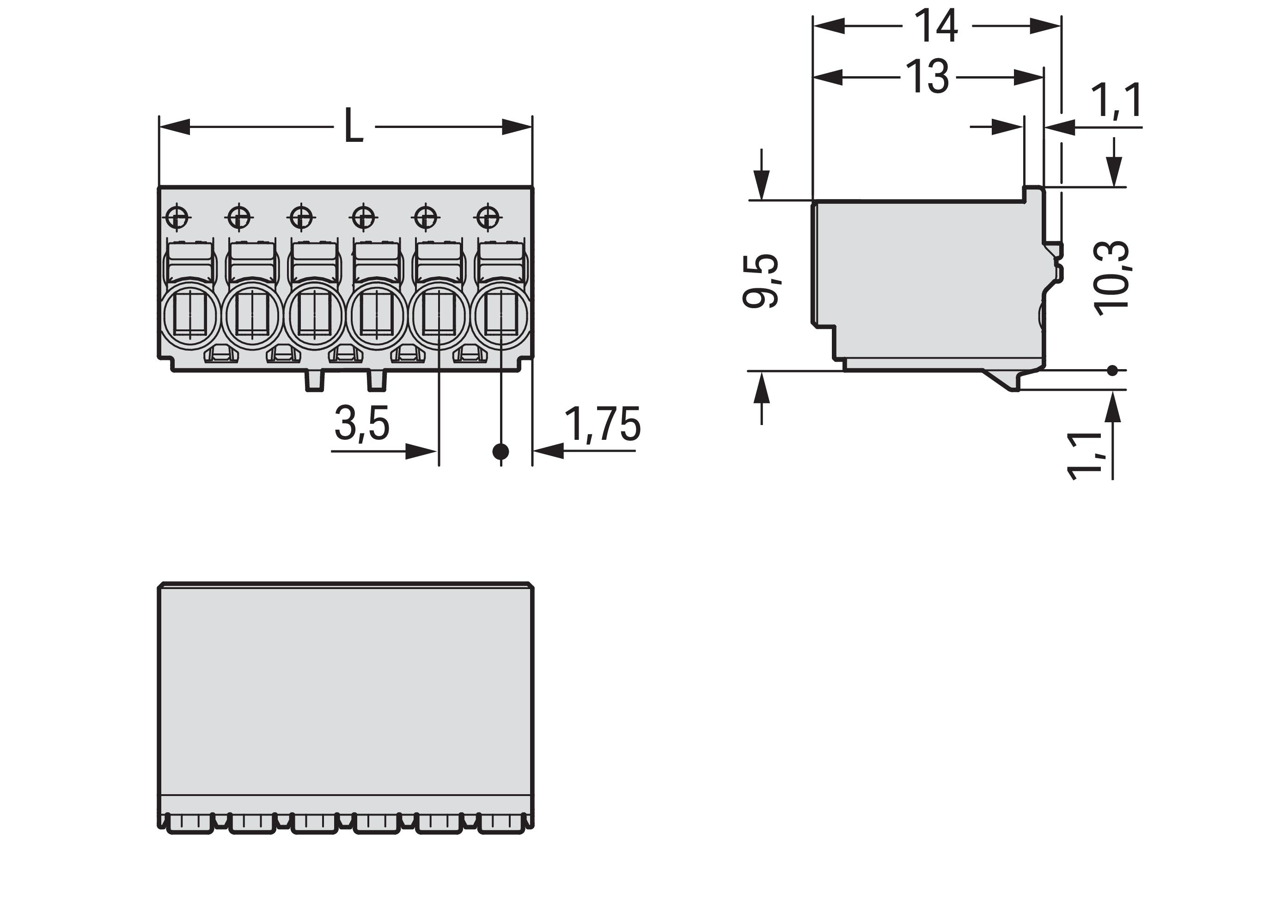 gniazdo 1-przewodowe; przycisk; Push-in CAGE CLAMP®; 1,5 mm²; raster 3,5 mm; 3-bieg.; 1,50 mm²; jasnoszary