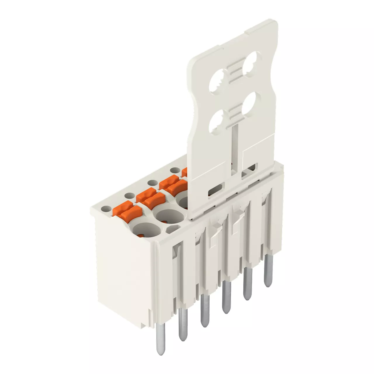 gniazdo THT 1-przewodowe proste; przycisk; Push-in CAGE CLAMP®; 1,5 mm²; raster 3,5 mm; 6-bieg.; pin lutowniczy Ø 1,0 mm; płytka odciążająca; 1,50 mm²; jasnoszary