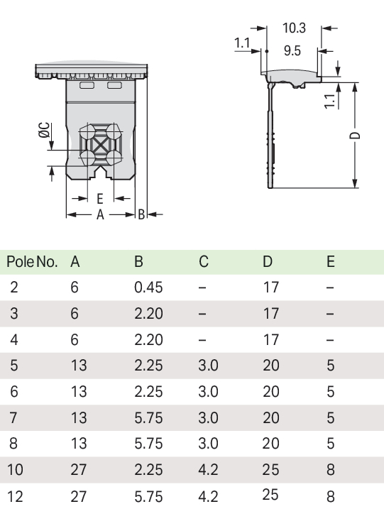 | Kąt płytka drukowana / wtyk: |