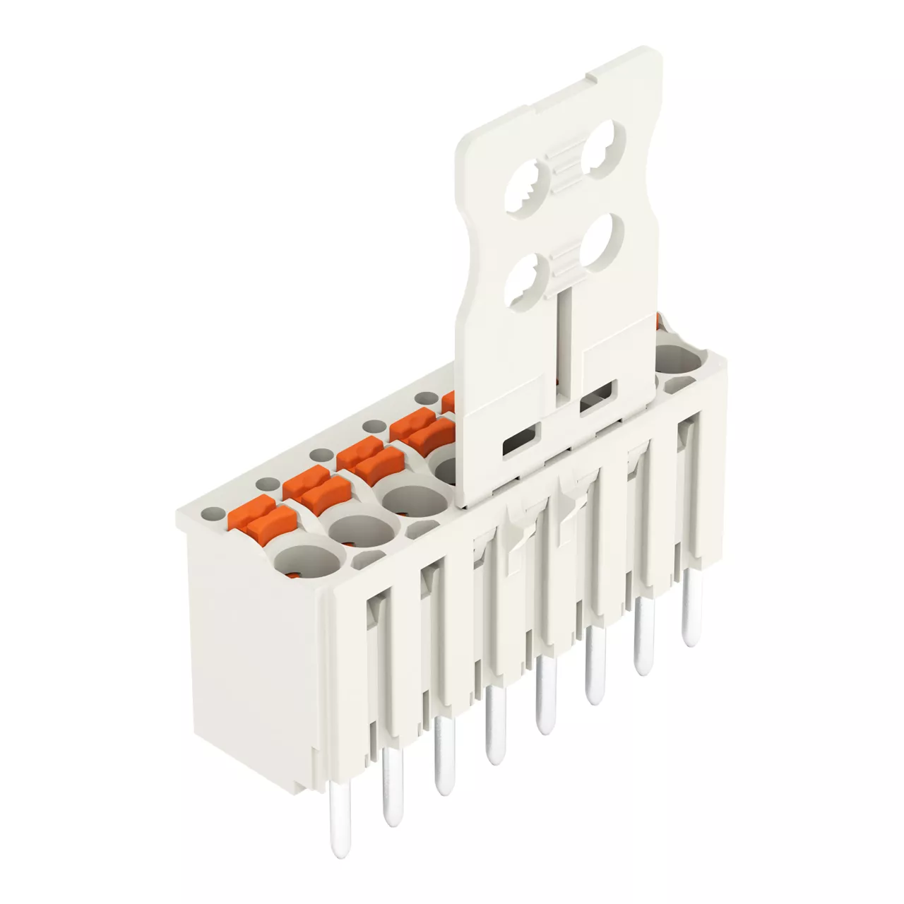 gniazdo THT 1-przewodowe proste; przycisk; Push-in CAGE CLAMP®; 1,5 mm²; raster 3,5 mm; 8-bieg.; pin lutowniczy Ø 1,0 mm; płytka odciążająca; 1,50 mm²; jasnoszary