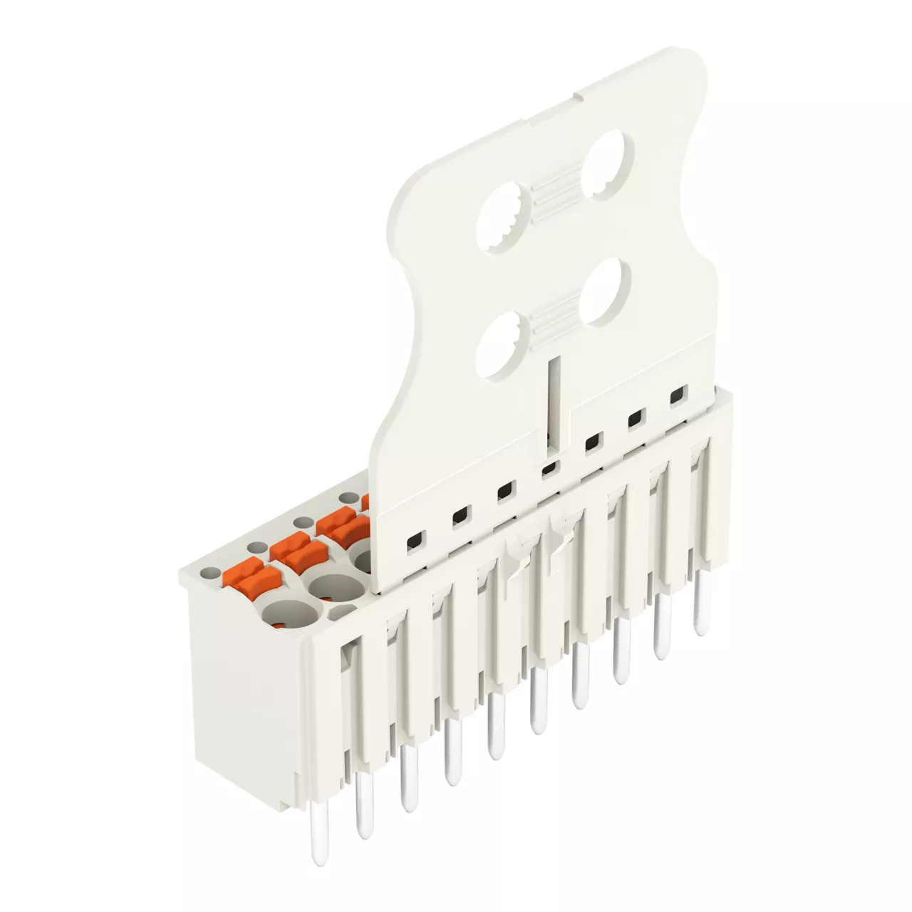 gniazdo THT 1-przewodowe proste; przycisk; Push-in CAGE CLAMP®; 1,5 mm²; raster 3,5 mm; 10-bieg.; pin lutowniczy Ø 1,0 mm; płytka odciążająca; 1,50 mm²; jasnoszary