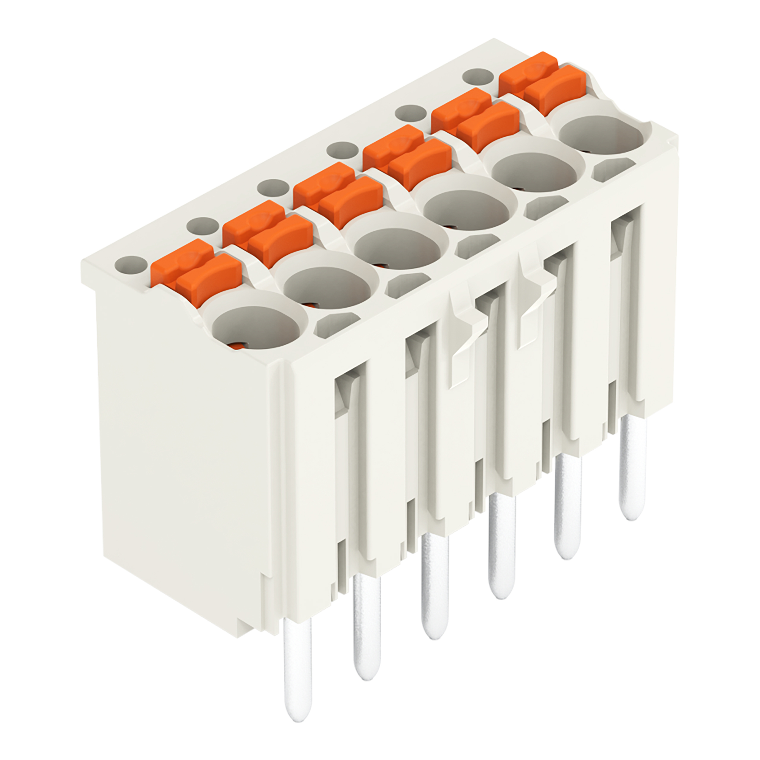 gniazdo THT 1-przewodowe proste; przycisk; Push-in CAGE CLAMP®; 1,5 mm²; raster 3,5 mm; 6-bieg.; pin lutowniczy Ø 1,0 mm; 1,50 mm²; jasnoszary