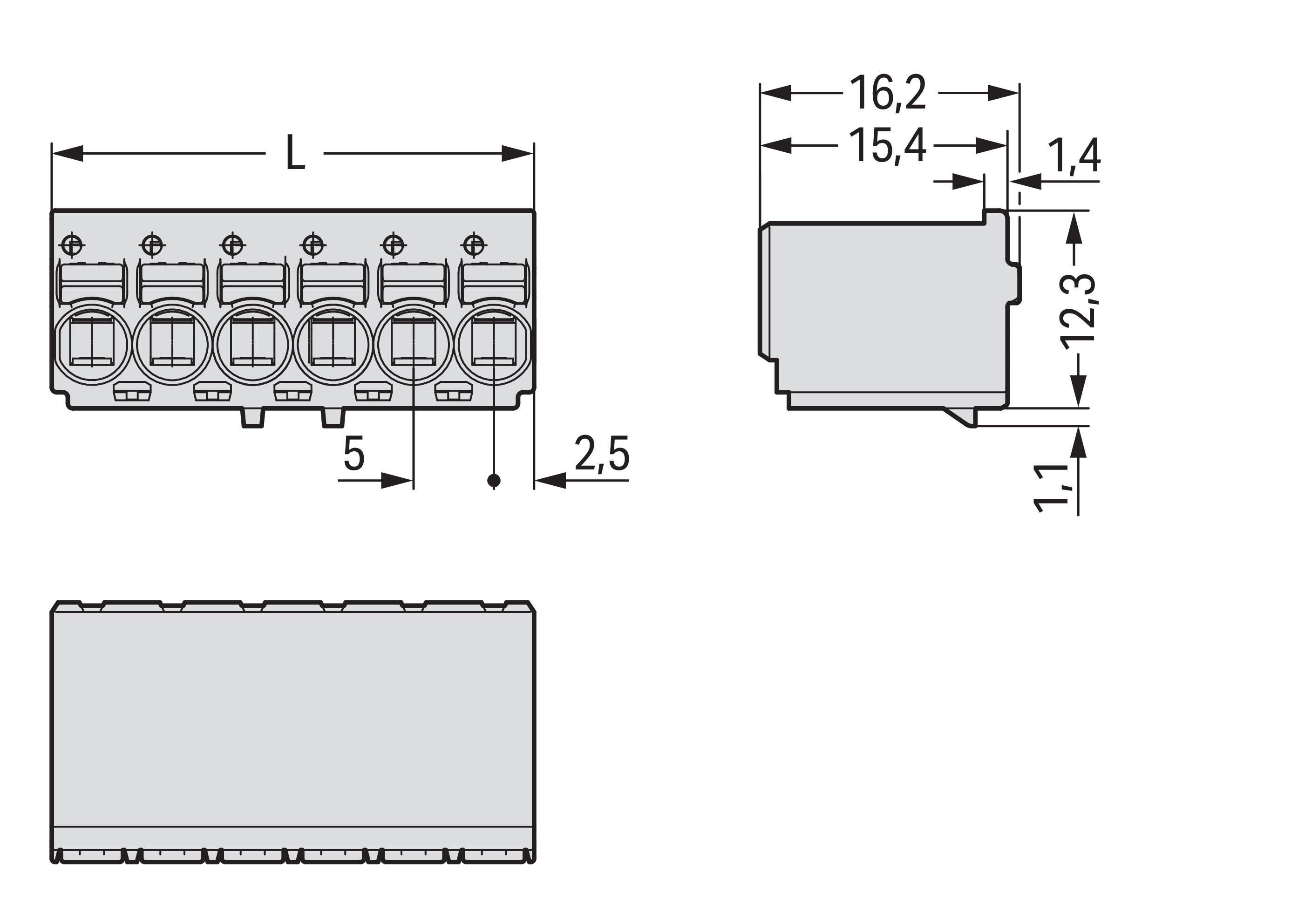 gniazdo 1-przewodowe; przycisk; Push-in CAGE CLAMP®; 2,5 mm²; raster 5 mm; 3-bieg.; 2,50 mm²; jasnoszary