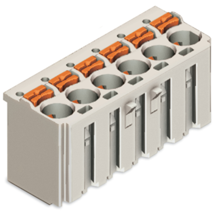 gniazdo 1-przewodowe; przycisk; Push-in CAGE CLAMP®; 2,5 mm²; raster 5 mm; 6-bieg.; 2,50 mm²; jasnoszary