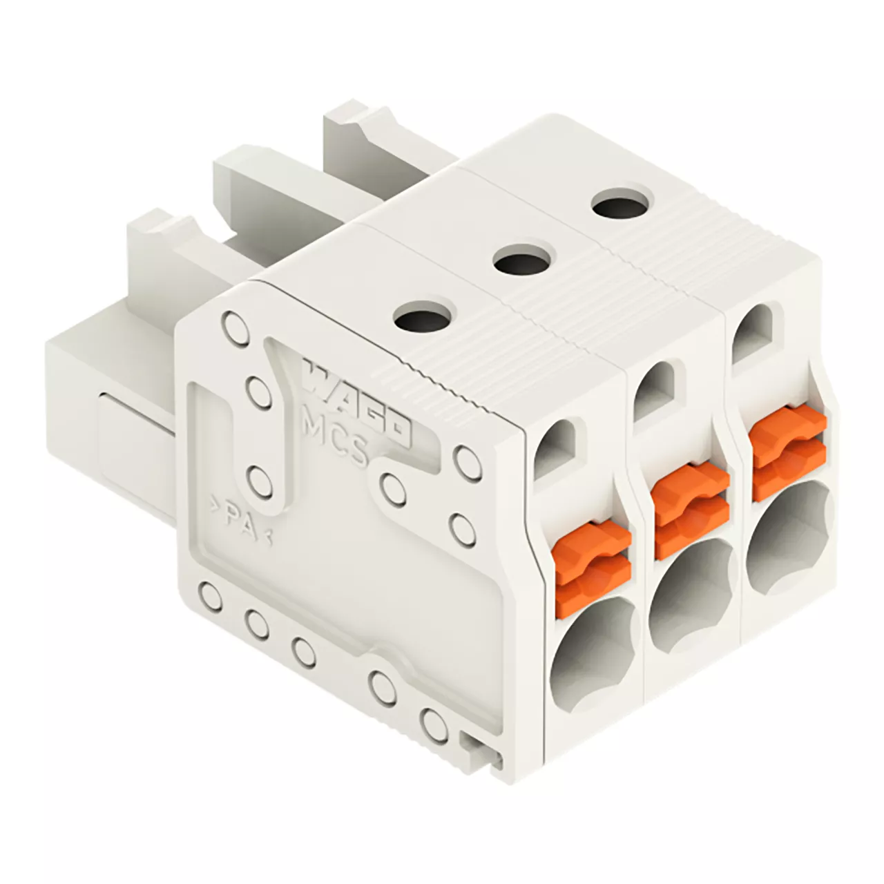 gniazdo 1-przewodowe; przycisk; Push-in CAGE CLAMP®; 2,5 mm²; raster 5 mm; 3-bieg.; 100% ochrona przed błędnym połączeniem; 2,50 mm²; jasnoszary