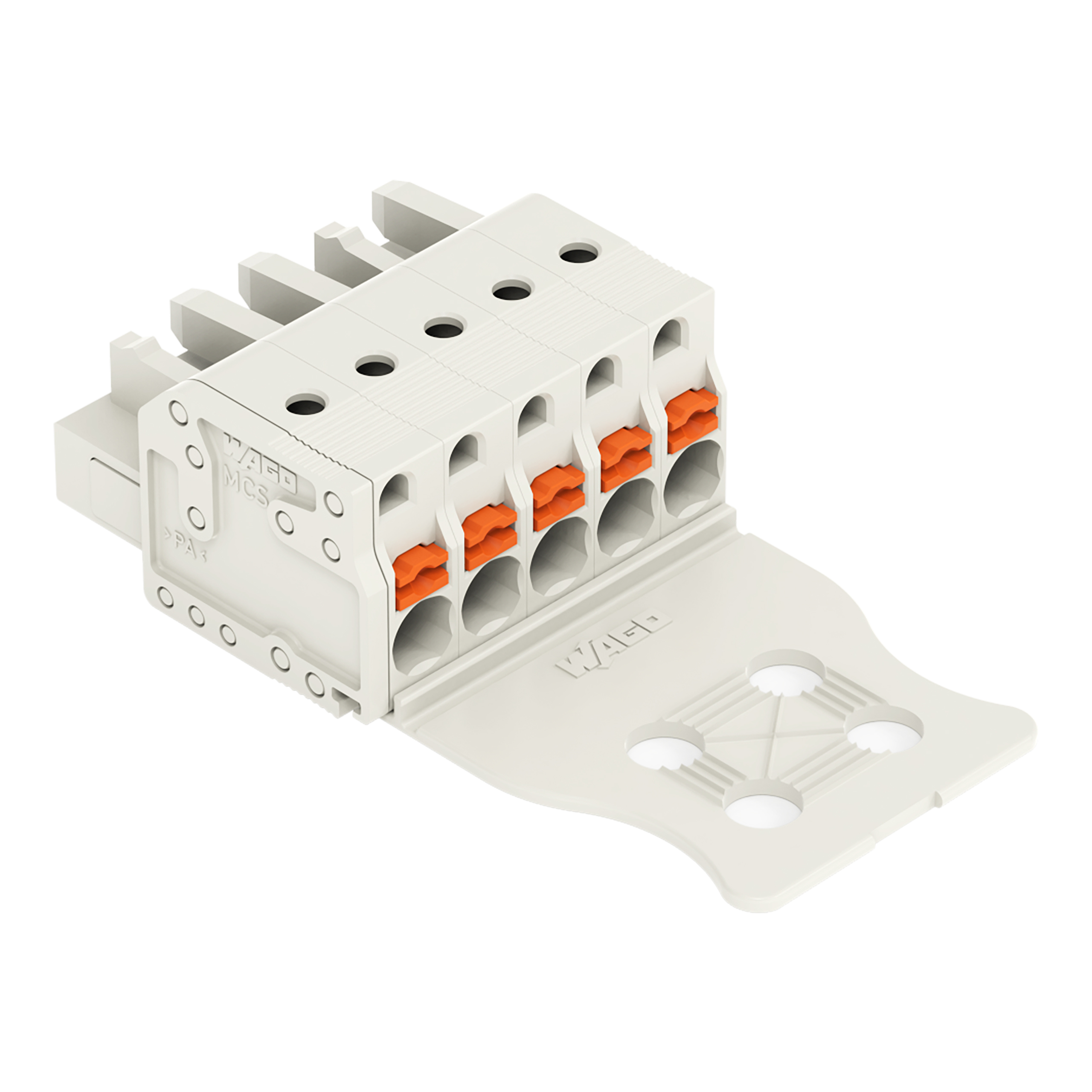 gniazdo 1-przewodowe; przycisk; Push-in CAGE CLAMP®; 2,5 mm²; raster 5 mm; 5-bieg.; 100% ochrona przed błędnym połączeniem; płytka odciążająca przewody; 2,50 mm²; jasnoszary