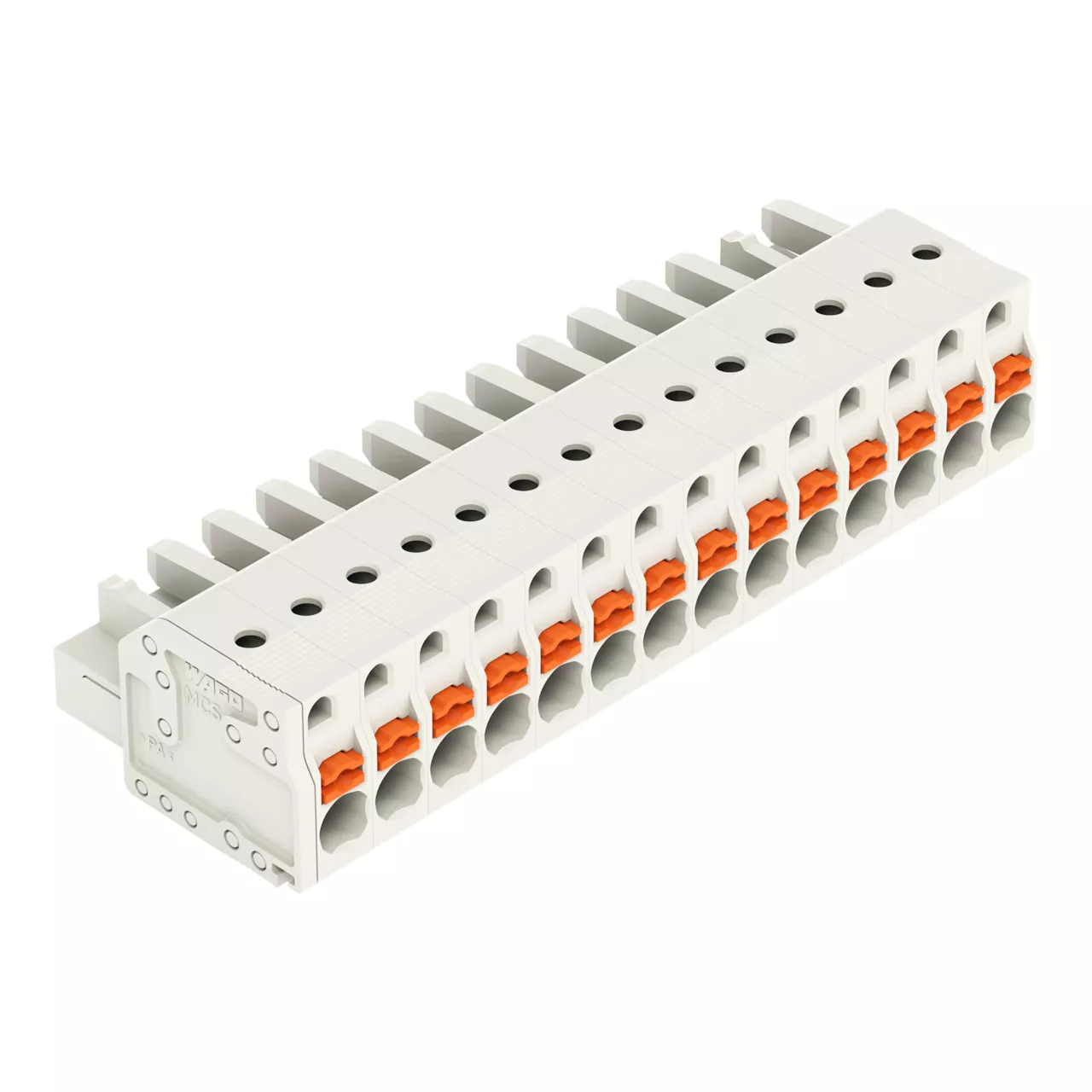 gniazdo 1-przewodowe; przycisk; Push-in CAGE CLAMP®; 2,5 mm²; raster 5 mm; 14-bieg.; 100% ochrona przed błędnym połączeniem; 2,50 mm²; jasnoszary