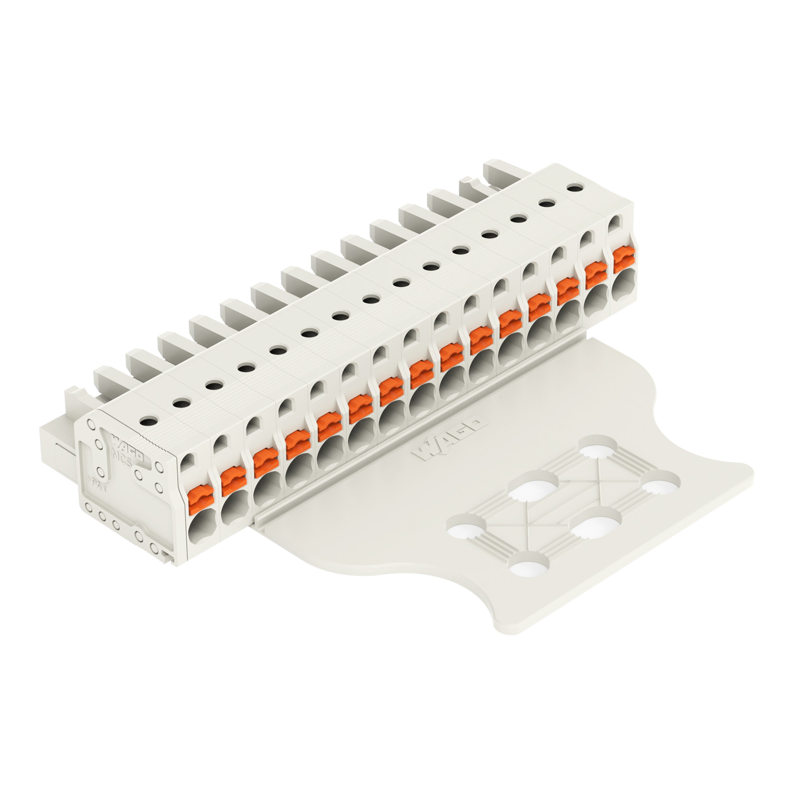gniazdo 1-przewodowe; przycisk; Push-in CAGE CLAMP®; 2,5 mm²; raster 5 mm; 15-bieg.; 100% ochrona przed błędnym połączeniem; płytka odciążająca przewody; 2,50 mm²; jasnoszary