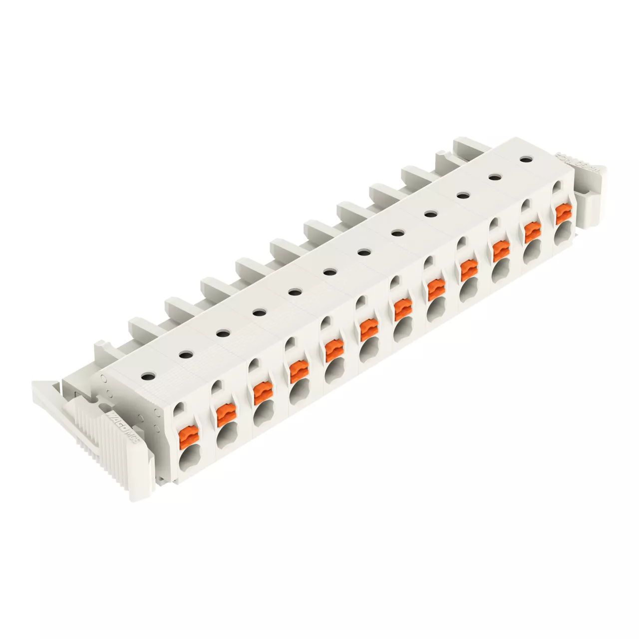 gniazdo 1-przewodowe; przycisk; Push-in CAGE CLAMP®; 2,5 mm²; raster 7,5 mm; 12-bieg.; 100% ochrona przed błędnym połączeniem; boczne zaczepy ryglujące; 2,50 mm²; jasnoszary