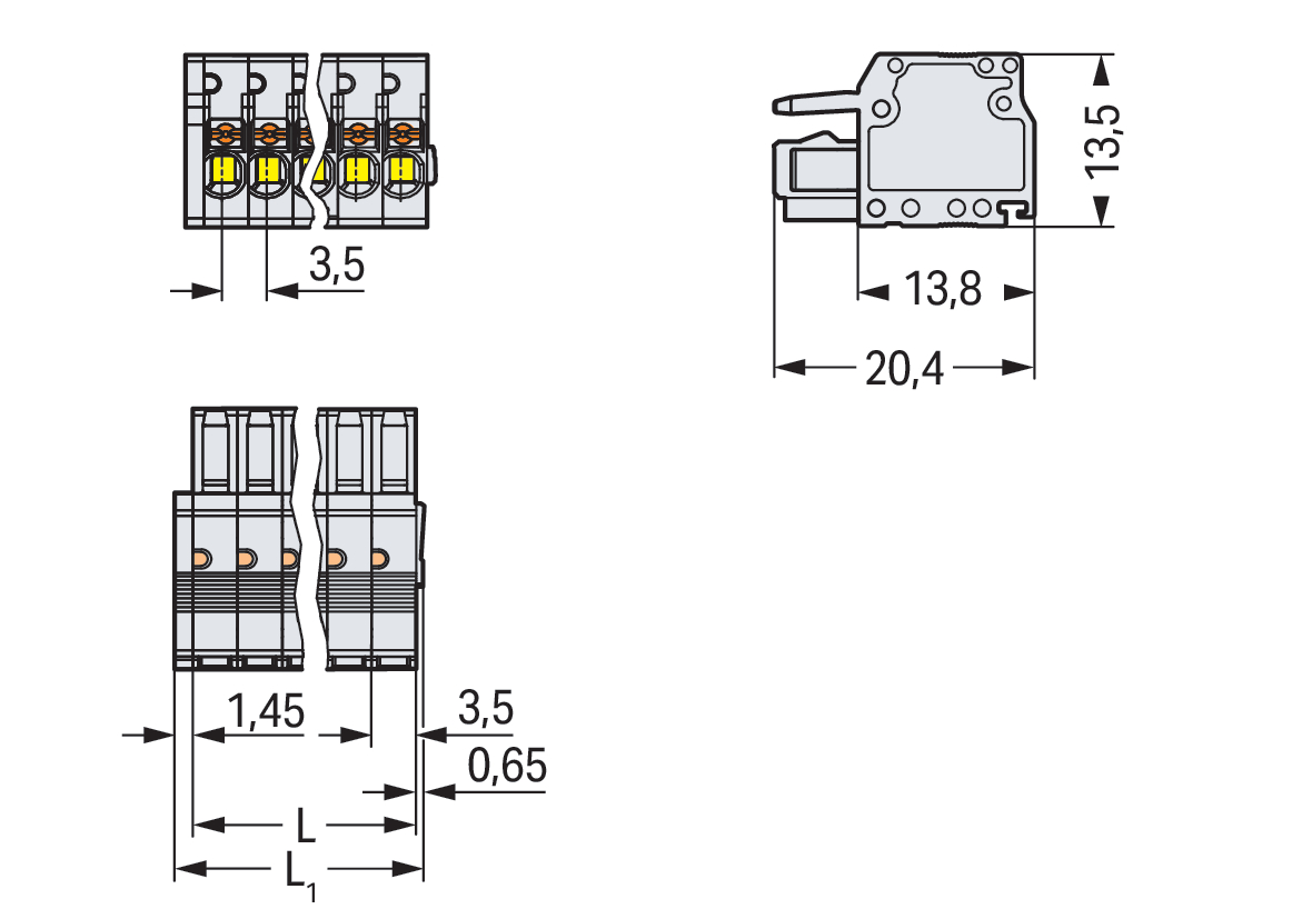 gniazdo 1-przewodowe; przycisk; Push-in CAGE CLAMP®; 1,5 mm²; raster 3,5 mm; 18-bieg.; 100% ochrona przed błędnym połączeniem; 1,50 mm²; jasnoszary