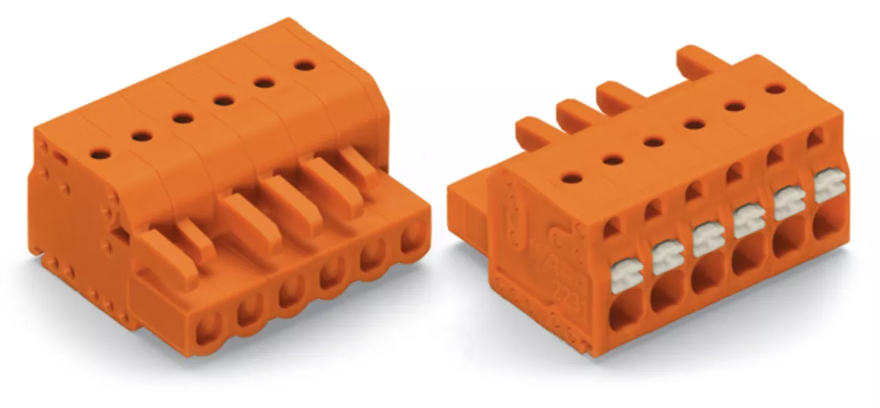gniazdo 1-przewodowe; przycisk; Push-in CAGE CLAMP®; 2,5 mm²; raster 5,08 mm; 22-bieg.; 2,50 mm²; pomarańczowy