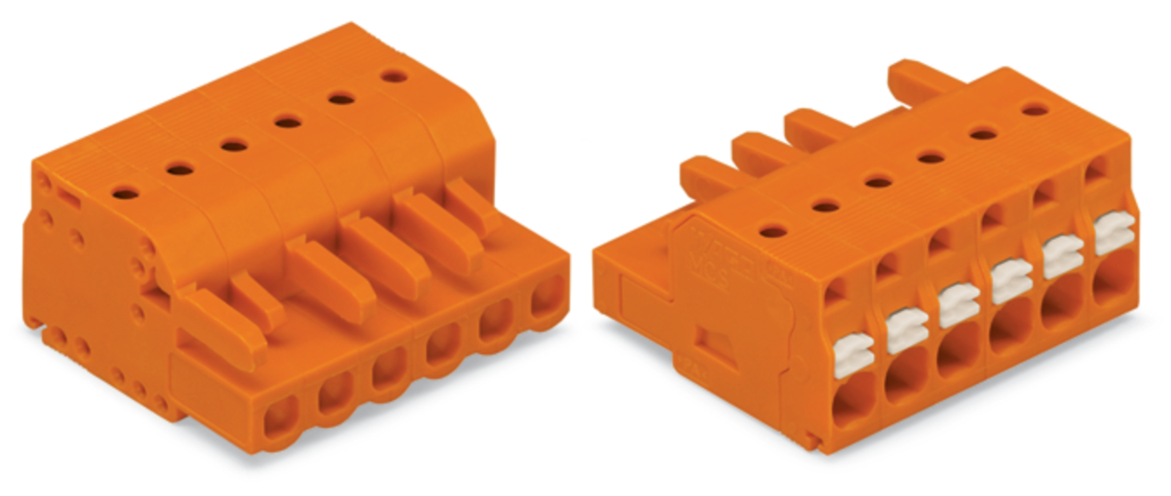 gniazdo 1-przewodowe; przycisk; Push-in CAGE CLAMP®; 2,5 mm²; raster 5,08 mm; 24-bieg.; ze zintegrowaną ścianką końcową; 2,50 mm²; pomarańczowy