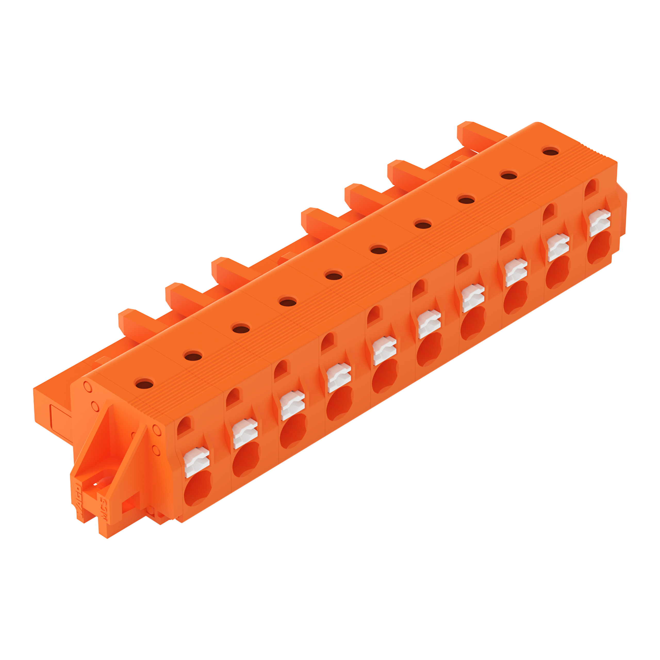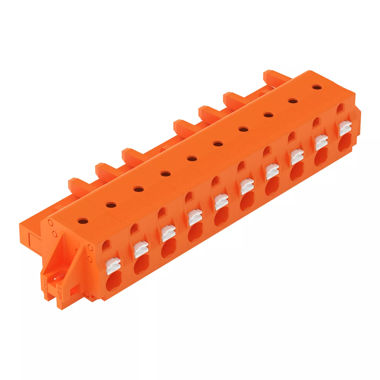 gniazdo 1-przewodowe; przycisk; Push-in CAGE CLAMP®; 2,5 mm²; raster 7,62 mm; 10-bieg.; kołnierz mocujący; 2,50 mm²; pomarańczowy