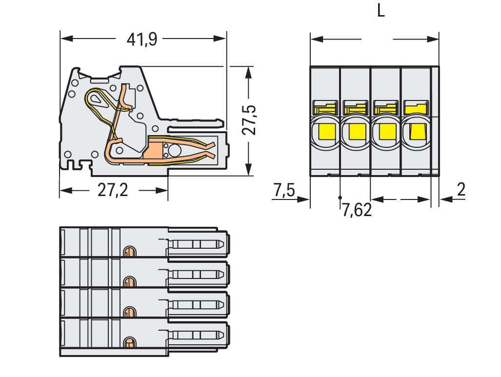 gniazdo 1-przewodowe; Push-in CAGE CLAMP®; 10 mm²; raster 7,62 mm; 8-bieg.; 100% ochrona przed błędnym połączeniem; 10,00 mm²; jasnoszary