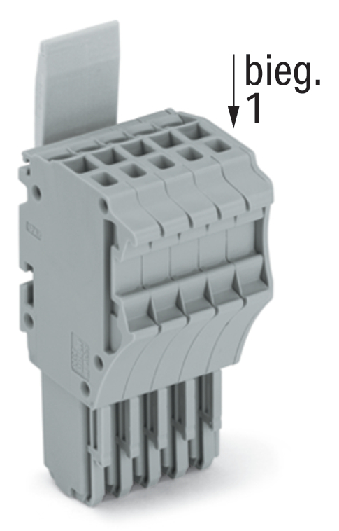 gniazdo 1-przewodowe; Push-in CAGE CLAMP®; 1,5 mm²; raster 3,5 mm; 5-bieg.; środkowy zaczep ryglujący; 1,50 mm²; szary