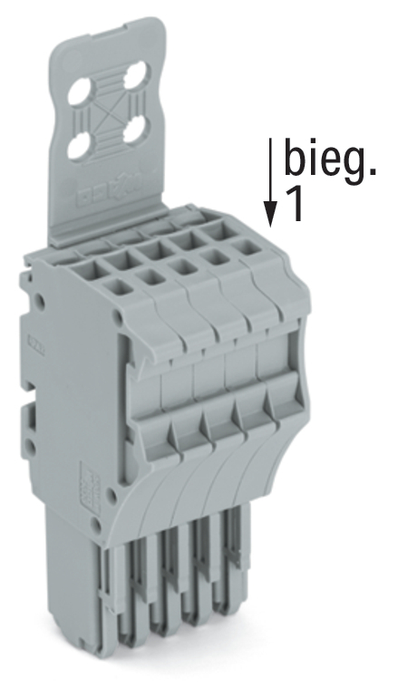 gniazdo 1-przewodowe; Push-in CAGE CLAMP®; 1,5 mm²; raster 3,5 mm; 5-bieg.; płytka odciążająca przewody; 1,50 mm²; szary