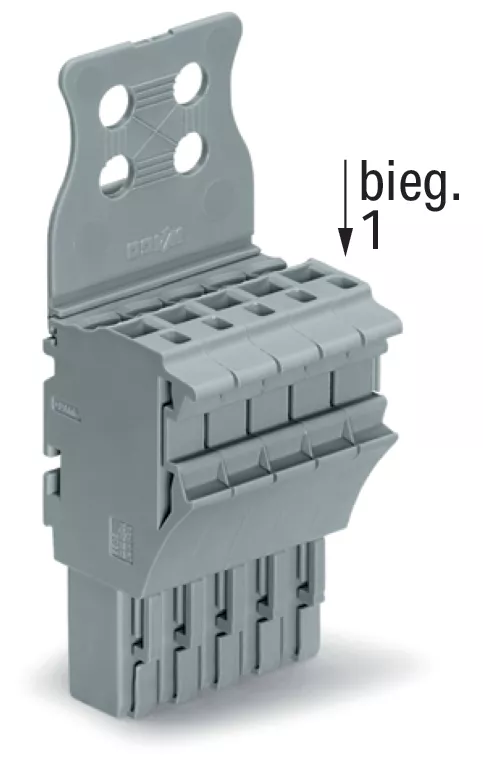 gniazdo 1-przewodowe; Push-in CAGE CLAMP®; 4 mm²; raster 5,2 mm; 5-bieg.; środkowy zaczep ryglujący; płytka odciążająca przewody; 4,00 mm²; szary
