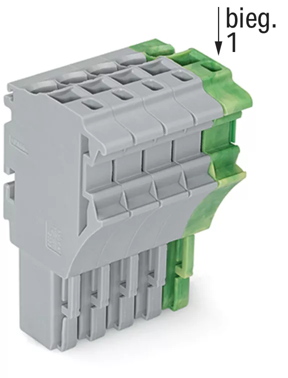 gniazdo 1-przewodowe; Push-in CAGE CLAMP®; 4 mm²; raster 5,2 mm; 5-bieg.; 4,00 mm²; szary/żółto-zielony