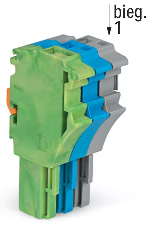 gniazdo 1-przewodowe; Push-in CAGE CLAMP®; 4 mm²; raster 5,2 mm; 3-bieg.; środkowy zaczep ryglujący; 4,00 mm²; żłt-ziel/niebieski/szary