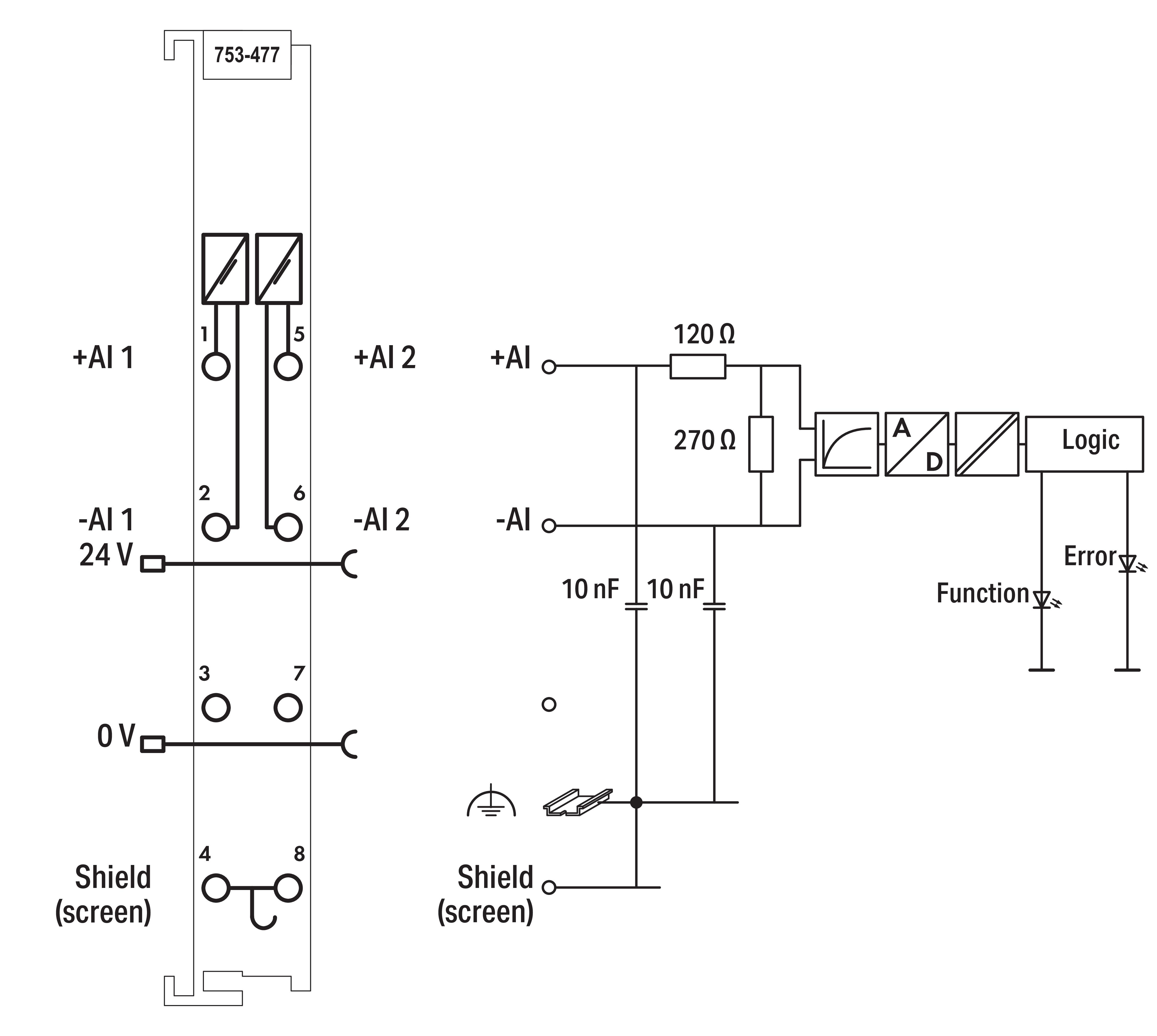 moduł wejść analogowych 2-kanałowy; 0 … 10 V AC/DC; wejścia różnicowe