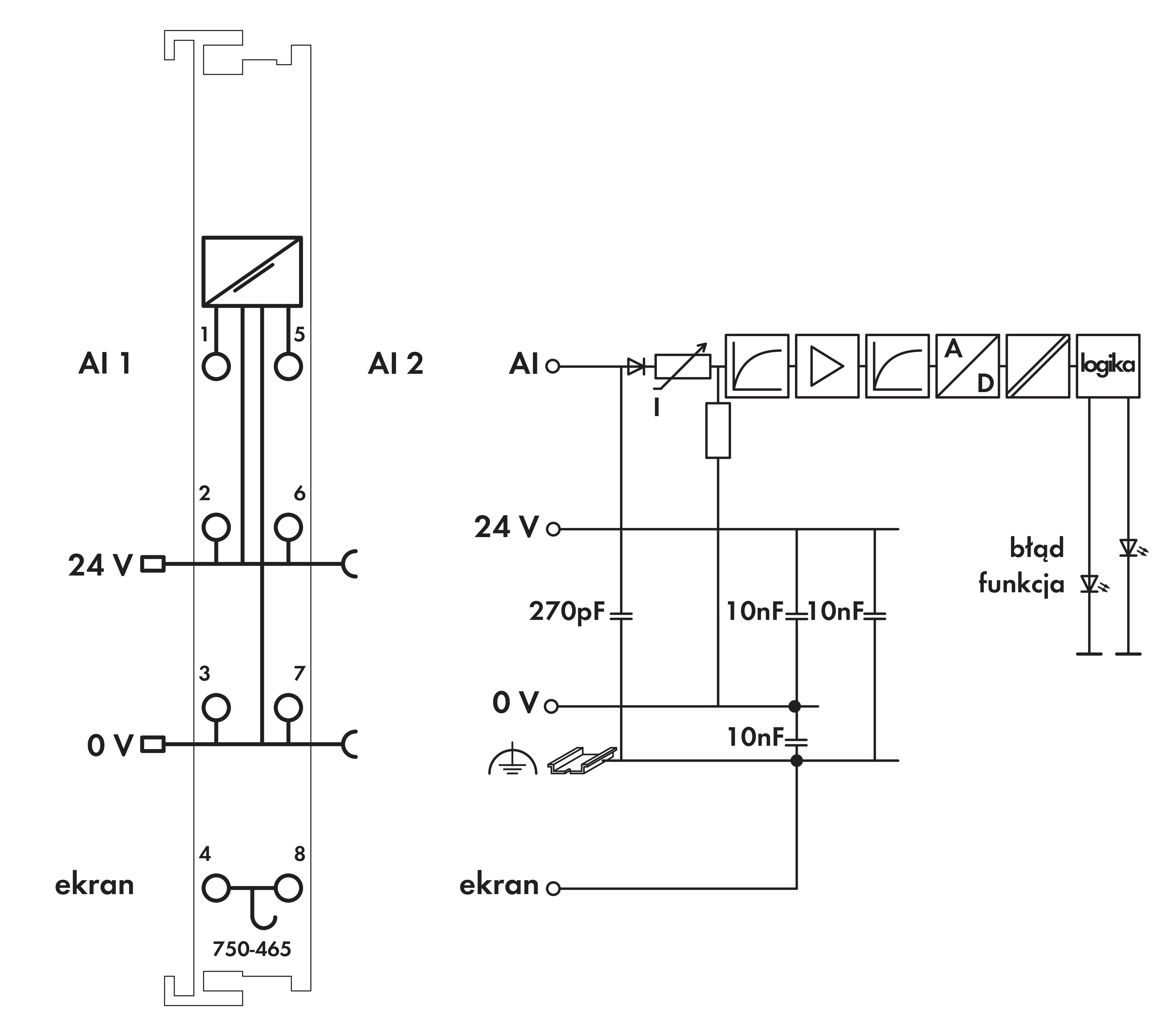 2-kanałowe wejście analogowe 0-20mA SE, jasnoszare 750-465/025-000