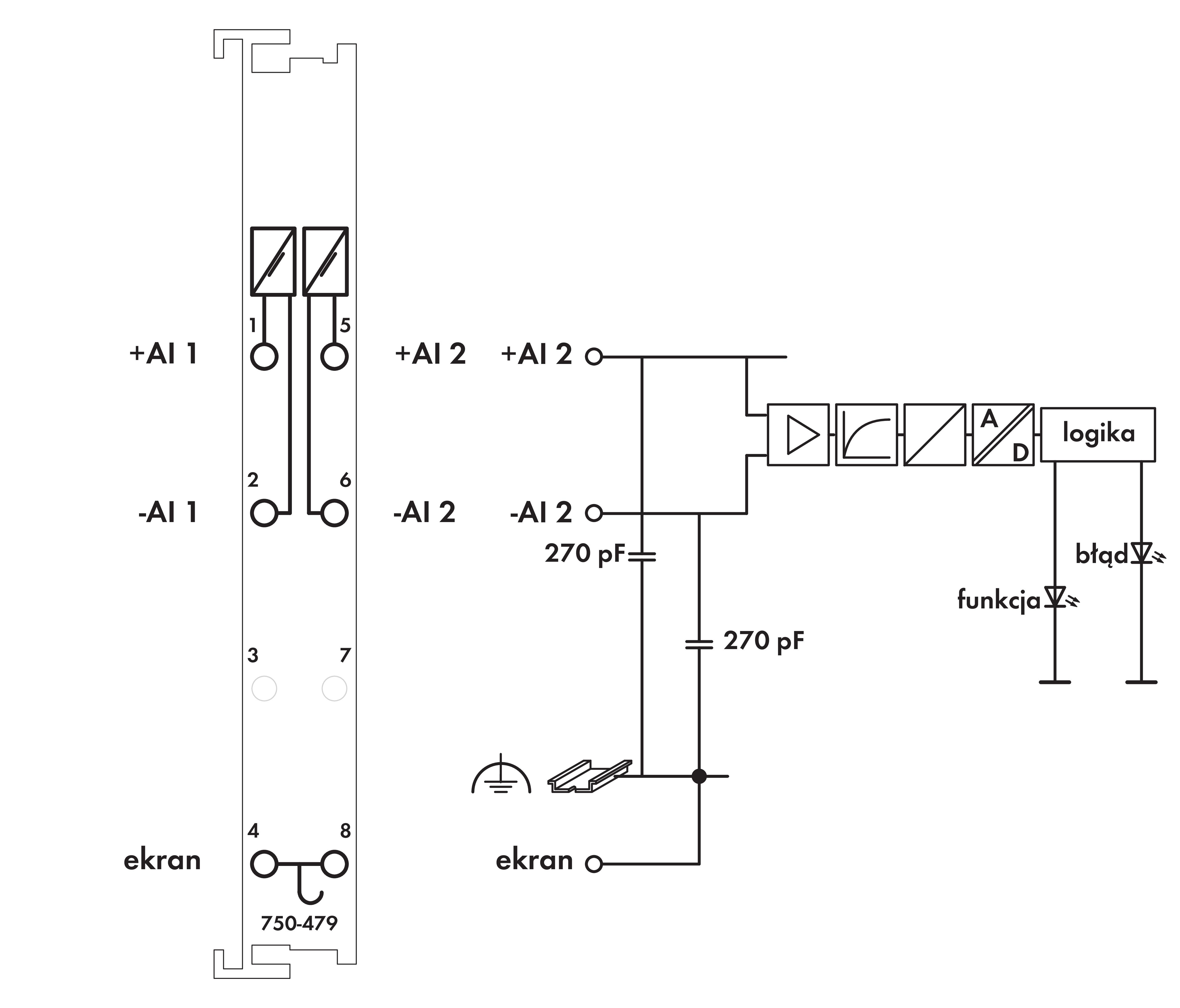 moduł wejść analogowych 2-kanałowy; ±10 V DC; wejścia różnicowe