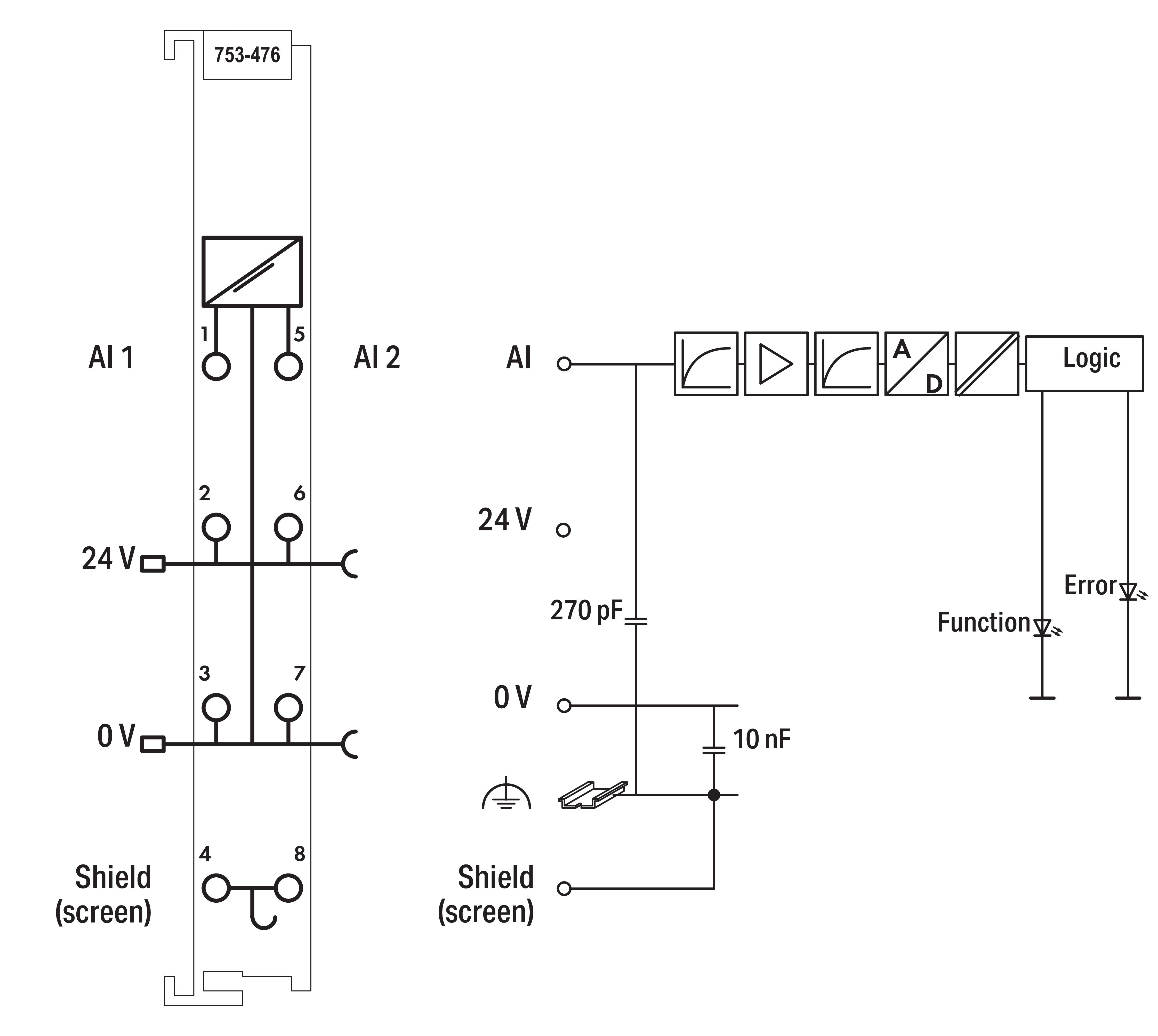 2-kanałowe wejście analogowe ±10 VDC SE, jasnoszare 753-476