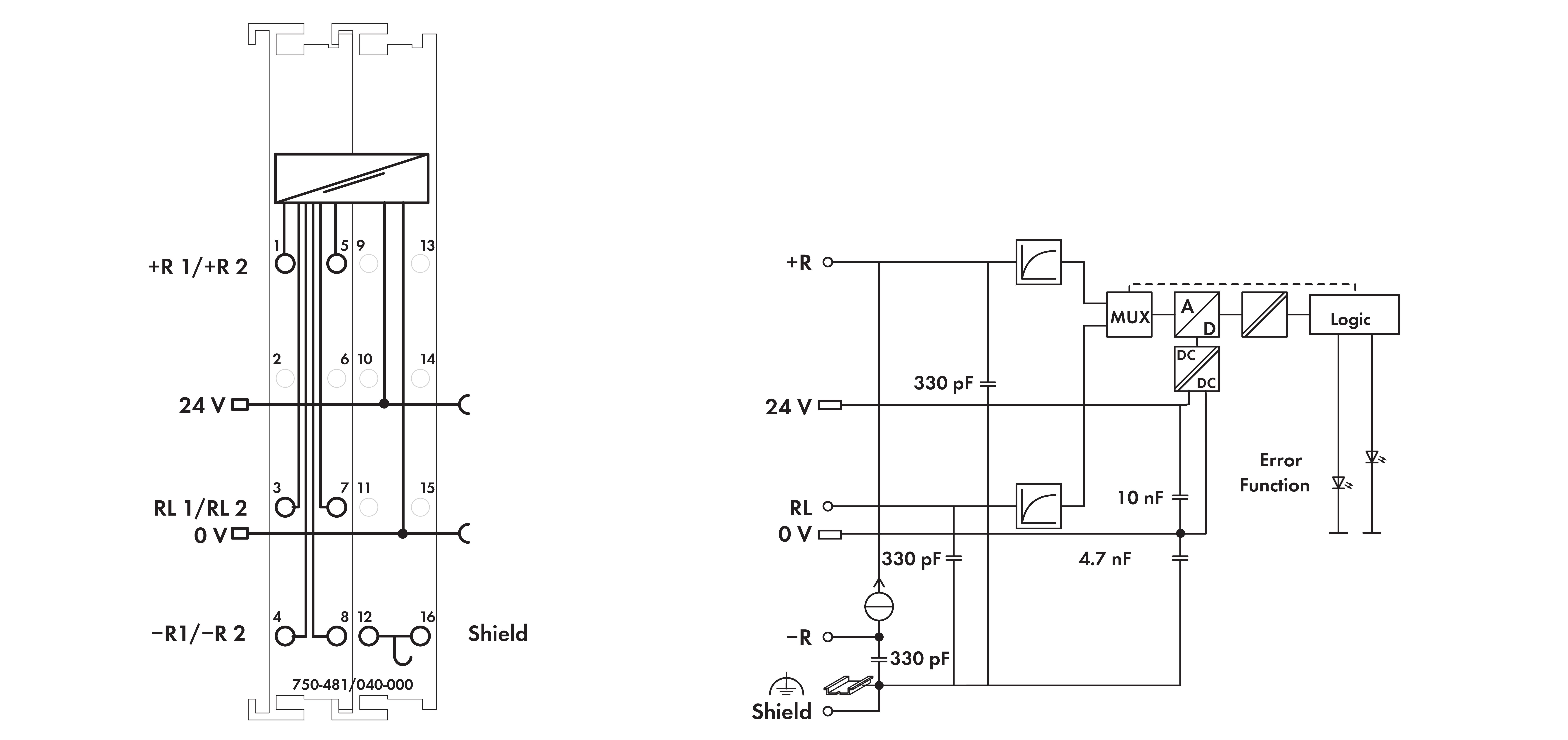 2-kanałowe wejście analogowe RTD, niebieski 750-481/040-000