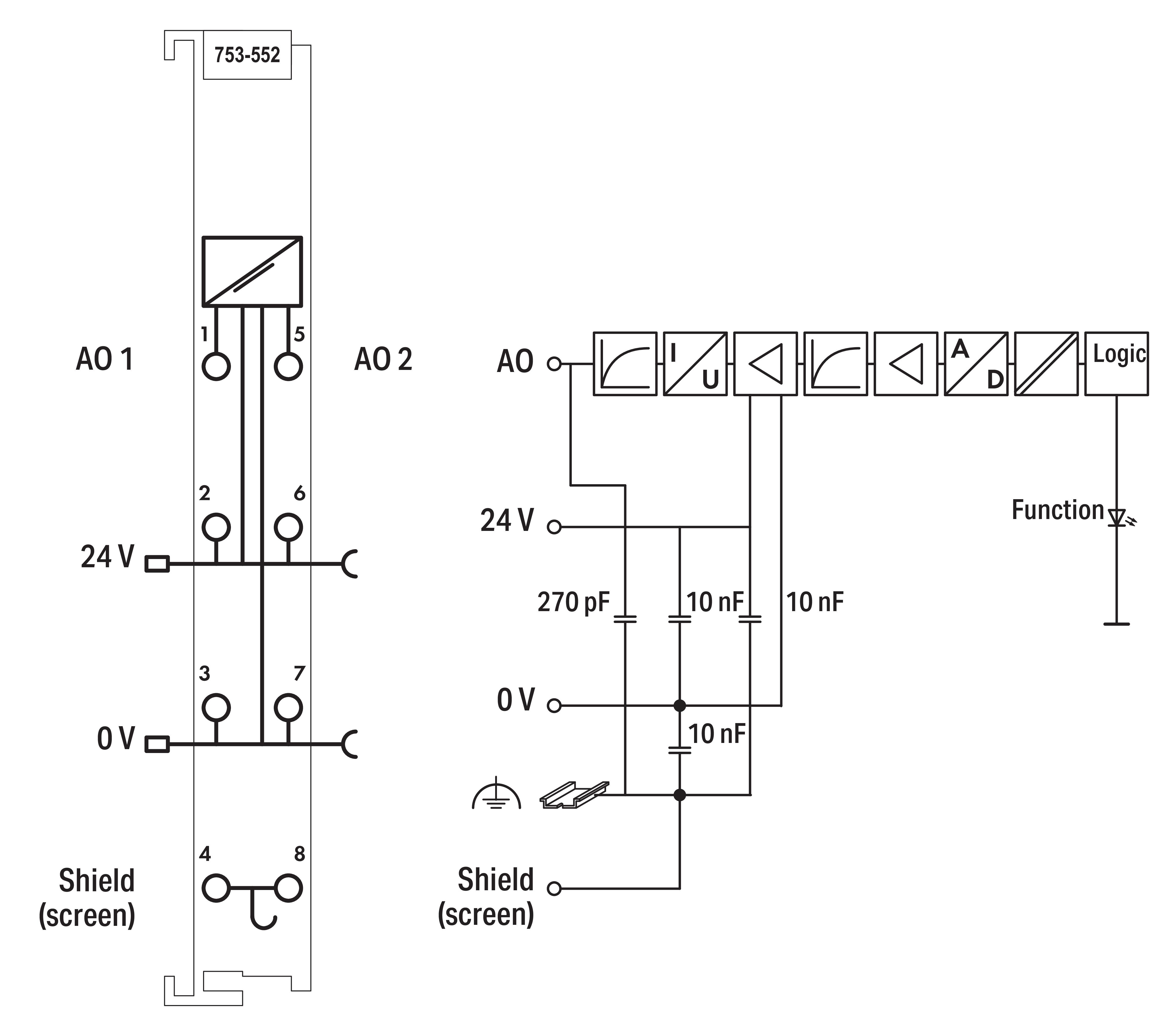 2-kanałowe wyjście analogowe 0-20mA, jasnoszare 753-552