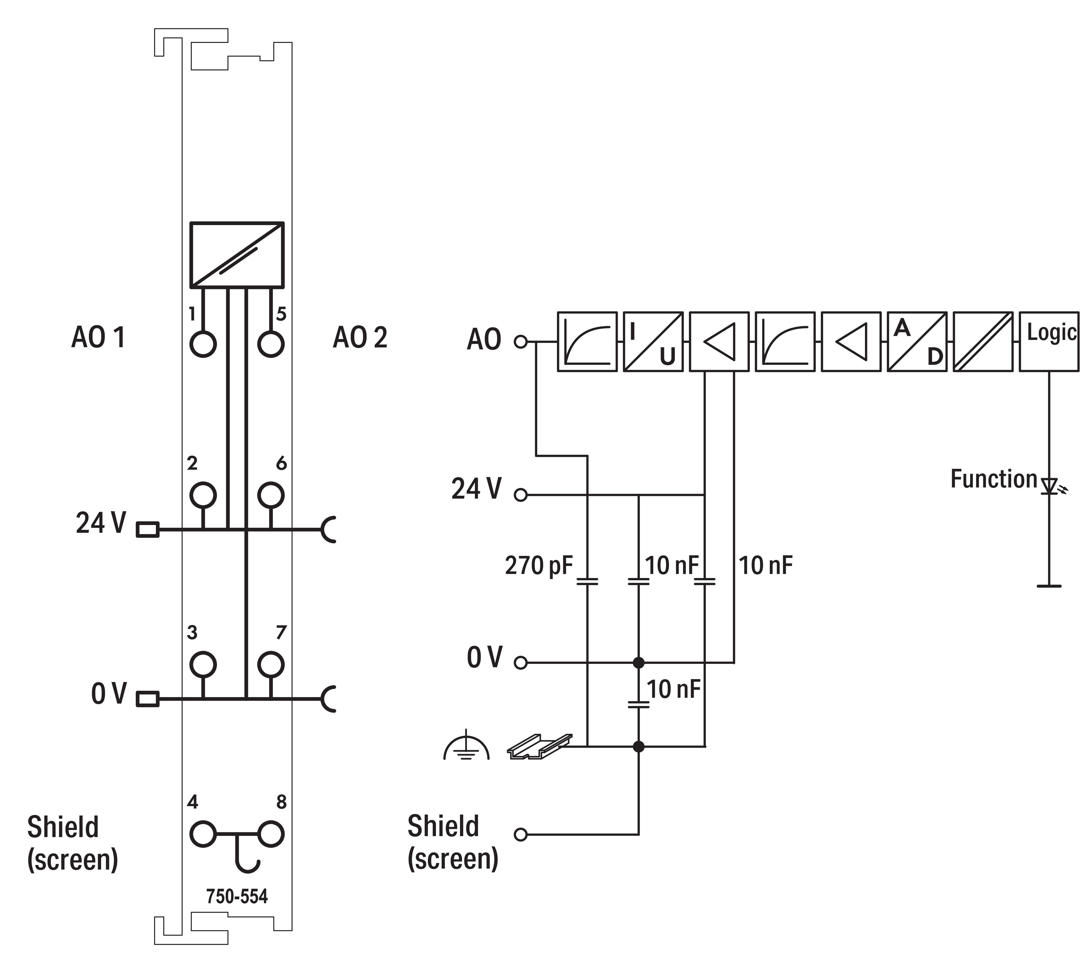 moduł wyjść analogowych 2-kanałowy; 4 … 20 mA