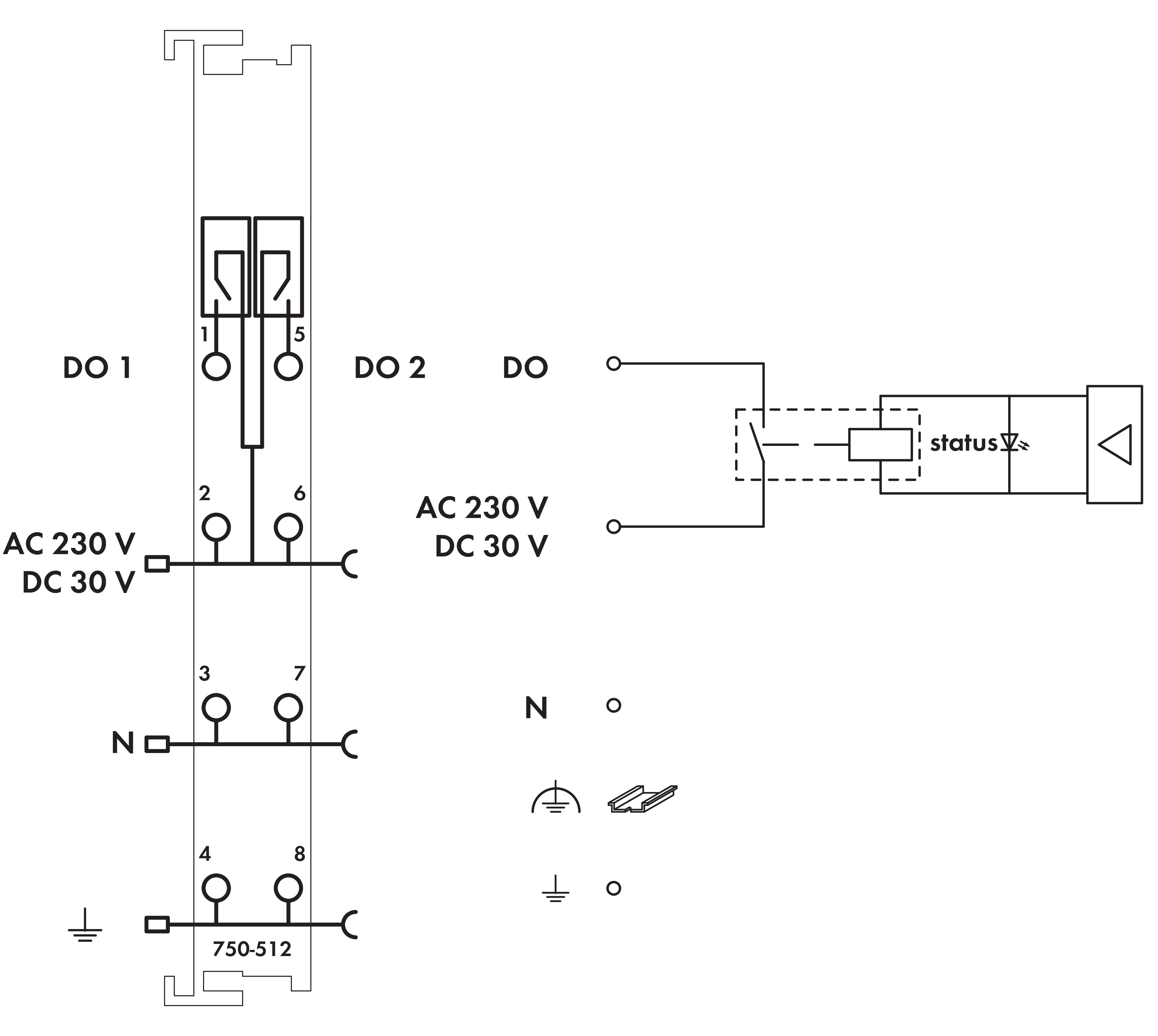 2-kanałowe wyjście przekaźnikowe; 250 V AC; 2,0 A; 2 zestyk zwierny 750-512