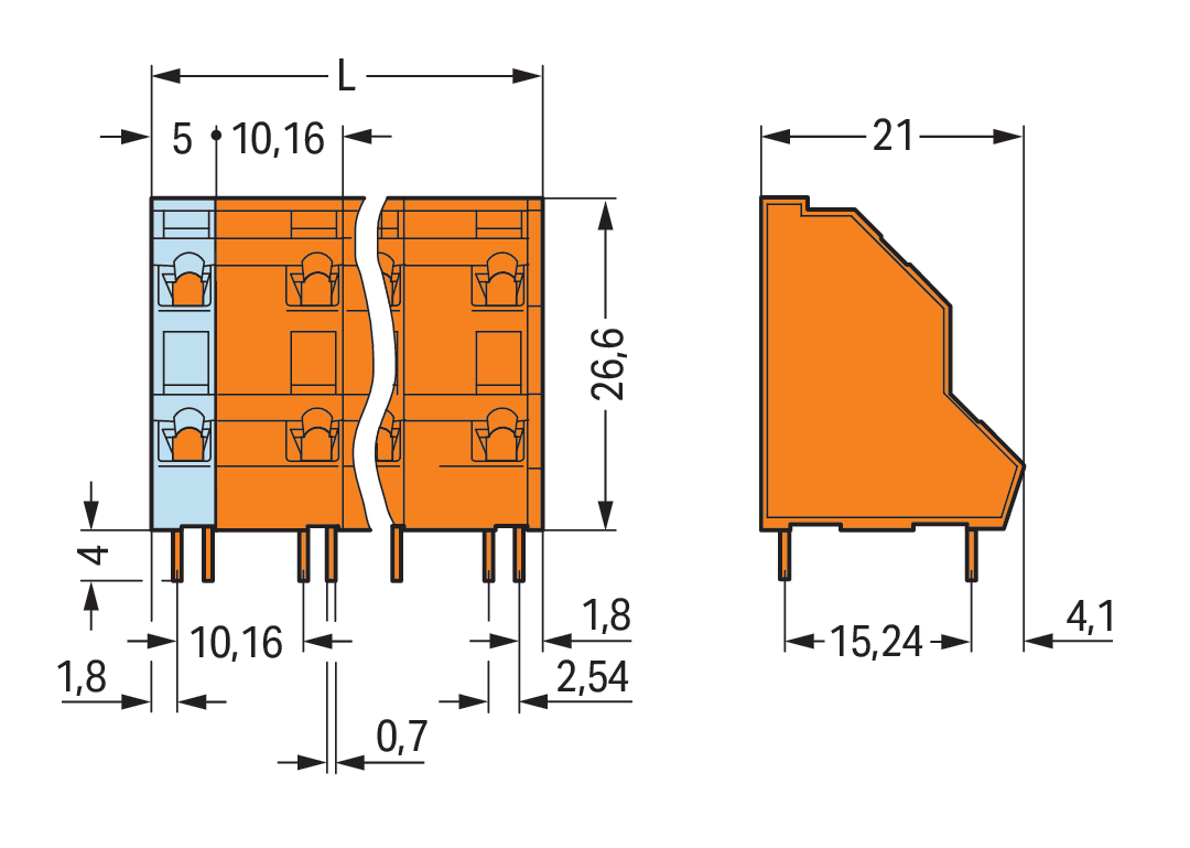 2-piętrowa złączka do płytek drukowanych 2,5 mm² RM 10,16 mm 12-bieg, pomarańczowa 736-856