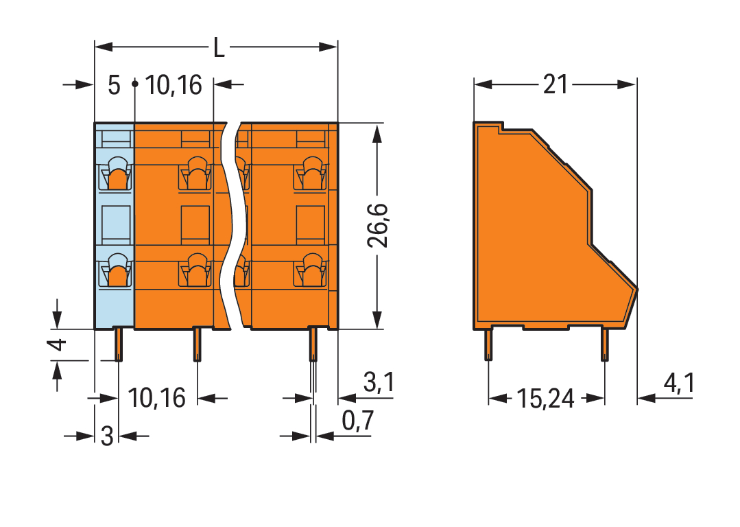 2-piętrowa złączka do płytek drukowanych 2,5 mm² RM 10,16 mm 16-bieg, pomarańczowa 736-808